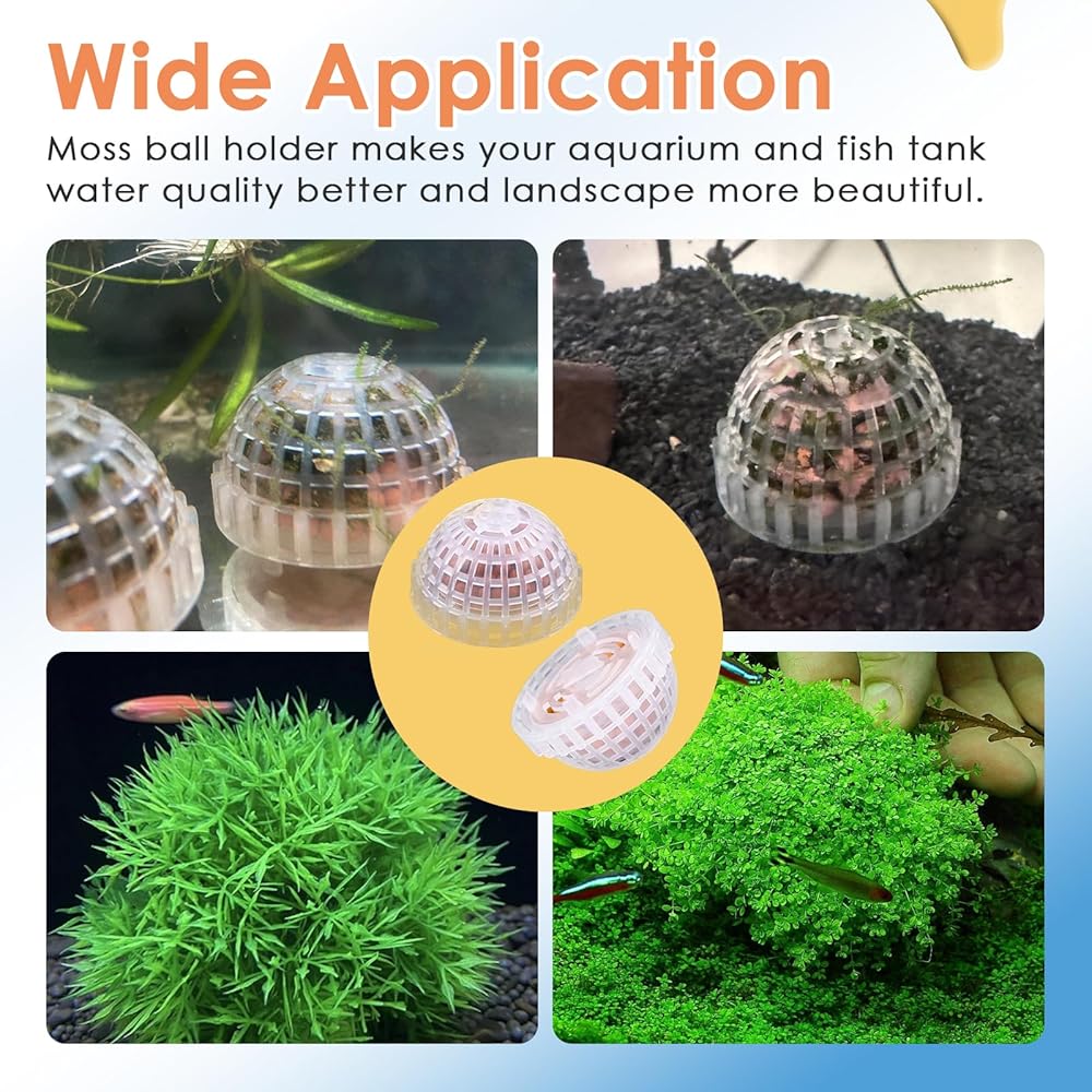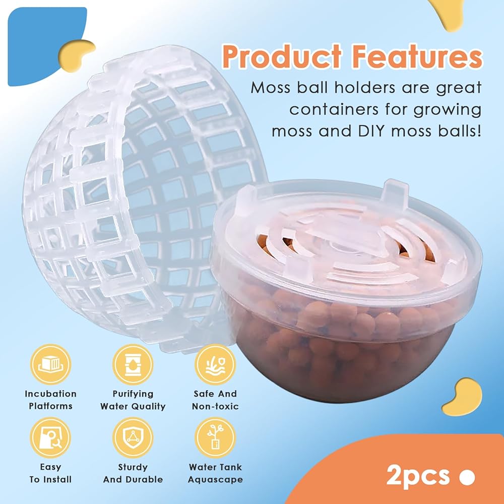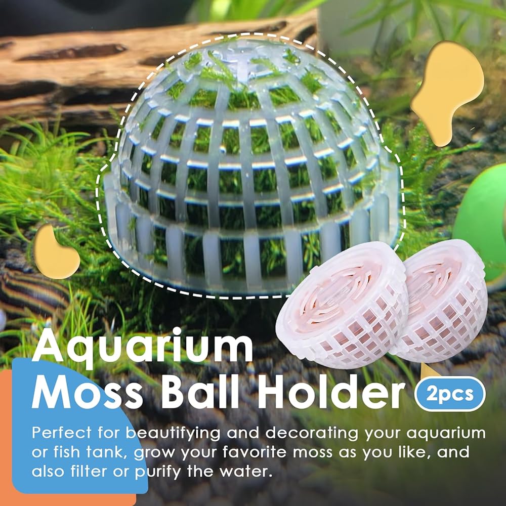 قطعتان من حامل كرة الطحلب لحوض السمك البلاستيكي مع حجر فلتر، حامل كرة الطحلب لخزان الأسماك، فلتر حامل كرة الطحلب لحوض السمك ونباتات الطحلب وديكور المناظر الطبيعية لخزان الأسماك