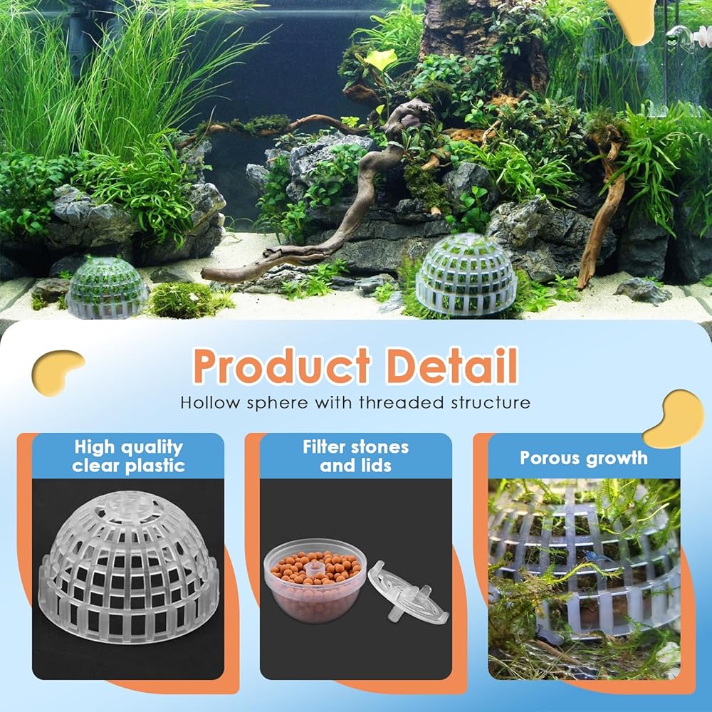 يوفر التصميم الكروي المجوف لحامل كرات الطحالب مساحة سطح كبيرة لزراعة الكثير من الطحالب والنباتات المائية معًا، مما يخلق بيئة طبيعية وسلمية.