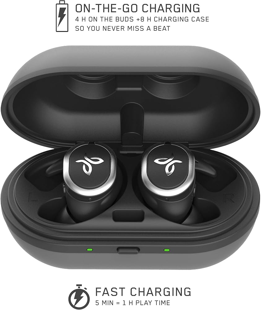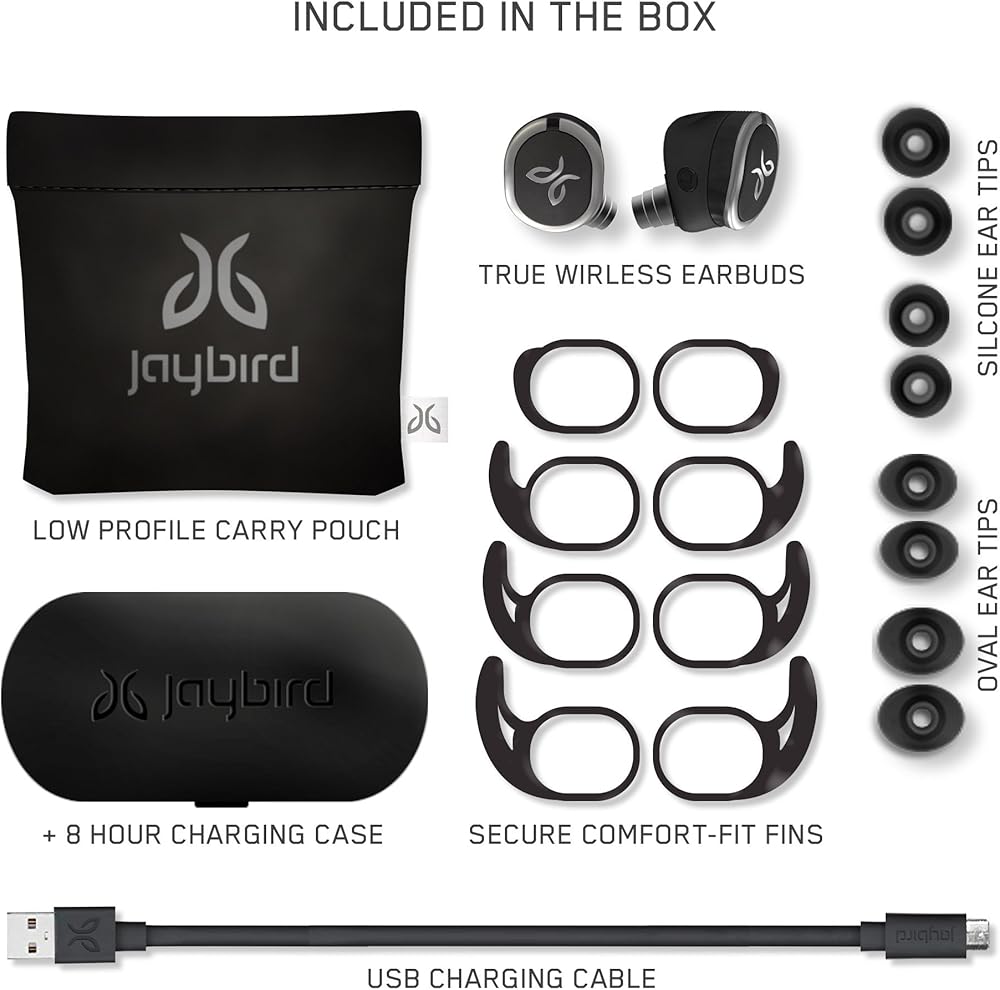 Jaybird run true wireless Sport headphones, completely wireless earbuds, Compatible with iOS and Android devices, deliver a radically freeing experience to runners. Jaybird run brings incredible, customizable sound in a super-small lightweight Package, delivering a Secure comfort-fit, up to 12 hours of portable battery life with included charging case, sweat-proofing and Water-Resistance. Free your run with Jaybird run - No wires, No worries.
