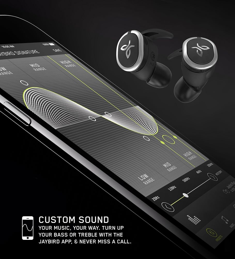 You can customize your sound by adjusting the lows, mids, and highs to pump up your true wireless Sport experience. The Jaybird app can locate your buds if they go missing