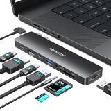 محول USB C HDMI USB متعدد المنافذ لجهاز MacBook Pro /Air M1 M2 M3 13 بوصة 15 بوصة 16 بوصة 2024-2018، 8 في 2 ملحقات لجهاز MacBook مع HDMI وThunderbolt 3 وUSB C و3 منافذ بيانات USB A 3.0 قارئ بطاقات SD TF ، صوتي