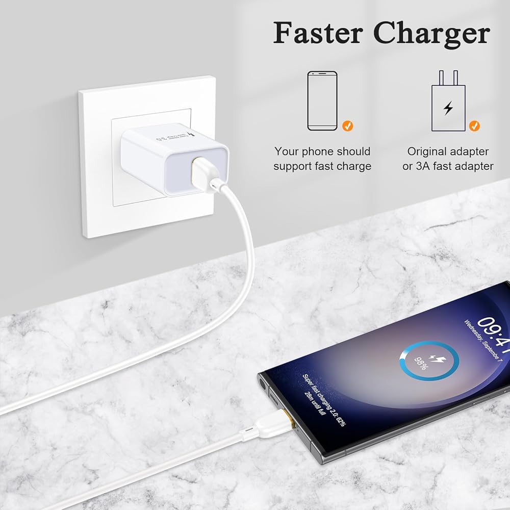 Samsung phone charger fast charging cord provides a fast safe charging current, with a charging speed increase of 40%. can also sync data between two devices with this cable.