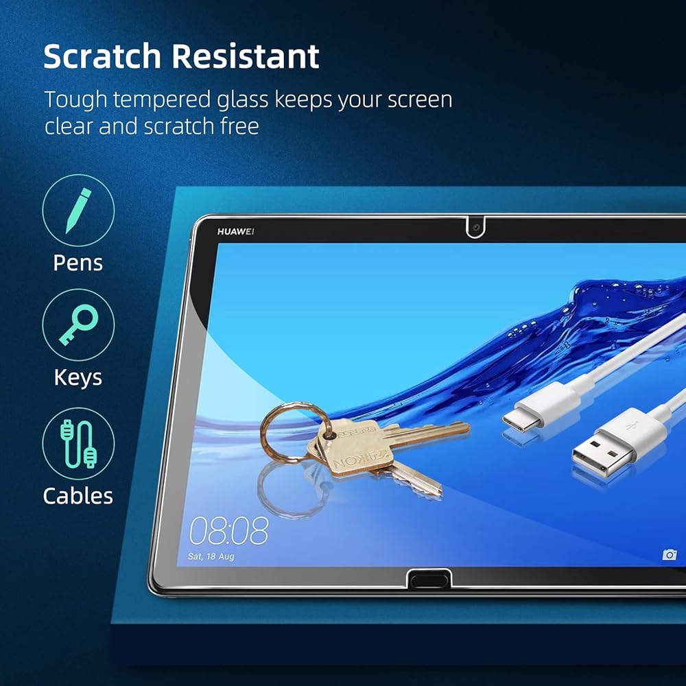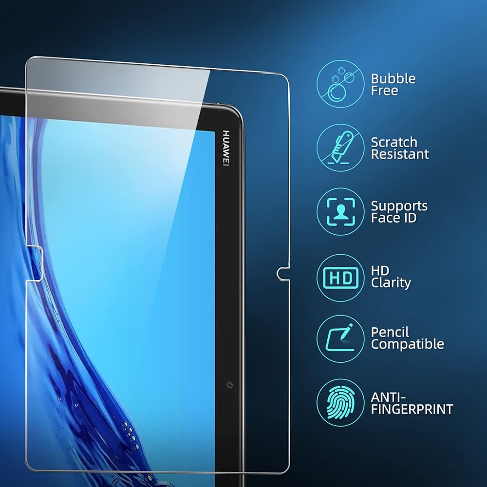 يوفر واقي الشاشة أقصى قدر من الحماية لشاشة اللمس Huawei MediaPad M5 Lite مقاس 10.1 بوصة. تتيح المساحة بين Huawei MediaPad M5 Lite 10.1 بوصة وواقي الشاشة المساحة المناسبة لتثبيت معظم حافظات الهاتف.