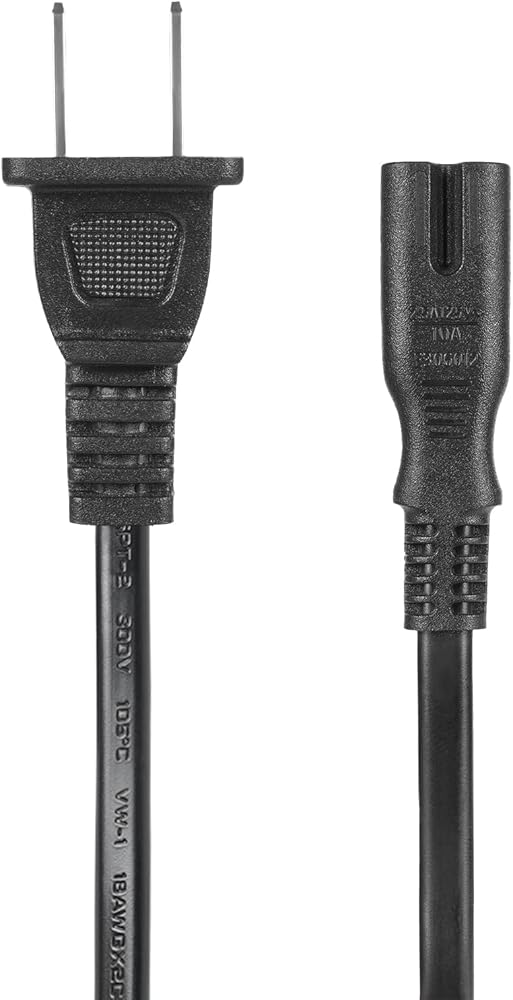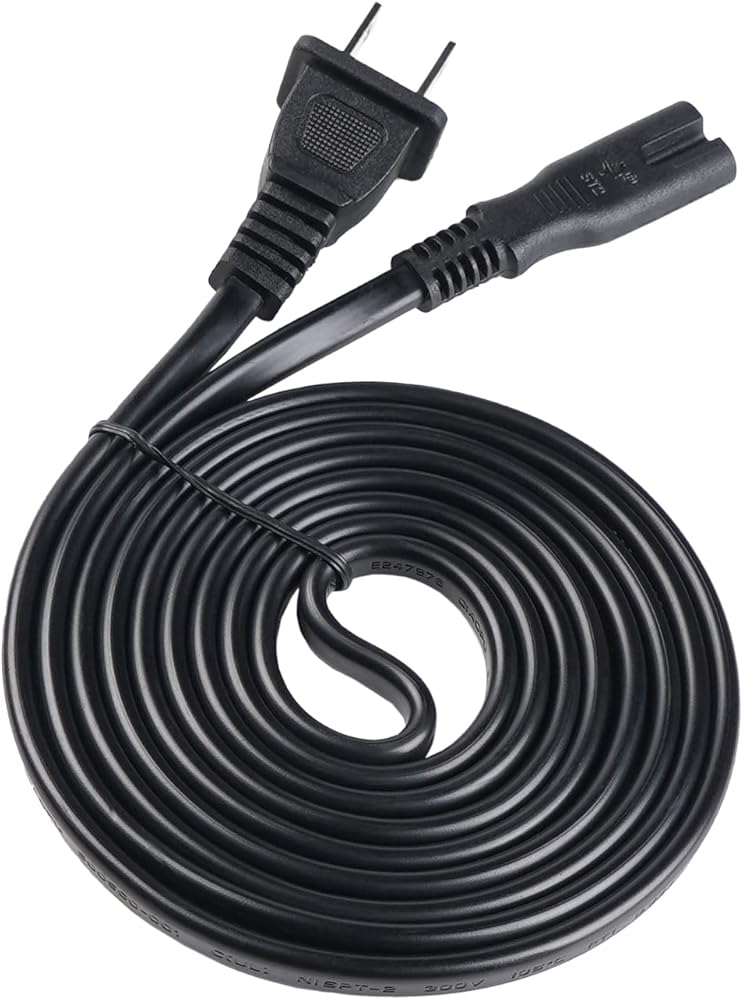 • 【Power Cord Type】Non Polarized 2 Prong Figure 8 Power Cord ( IEC320 C7 to NEMA 1-15P ), 18 AWG, 125V 10A.
