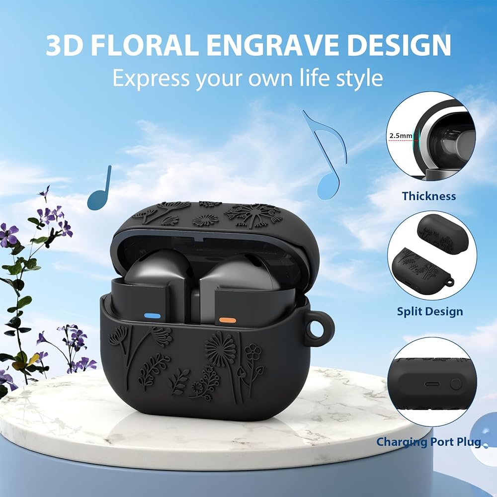 ✨【التوافق: هذه الحافظة الواقية المزخرفة بالزهور مصممة لهاتف Samsung Galaxy Buds 3/Buds 3 Pro(2024)، وتوفر حماية رائعة لجراب شحن Buds 3 الخاص بك ضد الصدمات والسقوط والخدوش