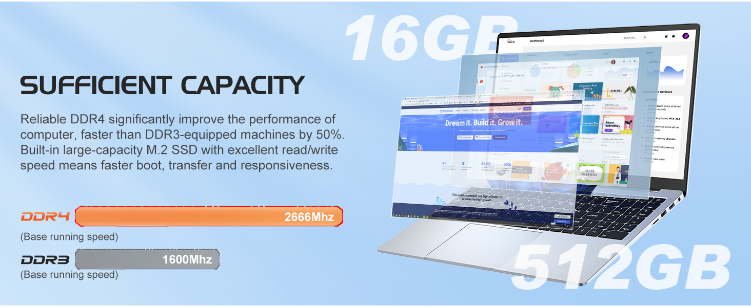 • 【تخزين بسعة كبيرة】يأتي الكمبيوتر المحمول ACEMAGIC مزودًا بذاكرة DDR4 سعة 16 جيجابايت، والتي يمكن أن تقلل من زمن قراءة بيانات الذاكرة وتحسين استخدام وحدة المعالجة المركزية. محرك أقراص M.2 SSD مدمج بسعة 512 جيجابايت، يوفر مساحة تخزين كافية لضمان سلاسة النظام مع حفظ المزيد من الملفات الشخصية. نظام التشغيل Windows 11 المثبت مسبقًا وجاهز للاستخدام بعد الإعداد الأولي للنظام. يوفر الكمبيوتر المحمول Acemagic الذي يعمل بنظام Windows بدء تشغيل وتحميل سريعين للتطبيقات، بالإضافة إلى مساحة تخزين كبيرة لملفاتك المتنوعة