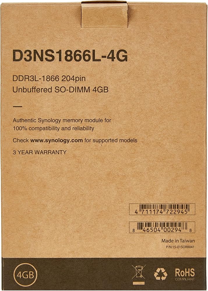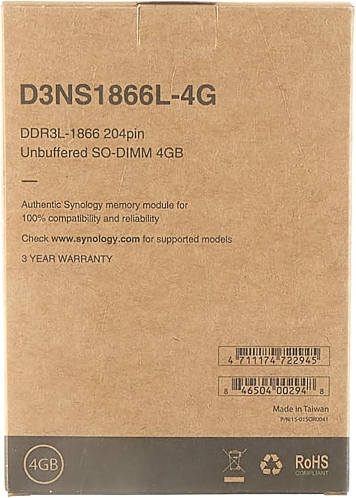 Synology D3NS1866L-4G 4GB DDR3L-1866 unbuffered SO-DIMM 204pin 1.35V RAM Module compatible with various models