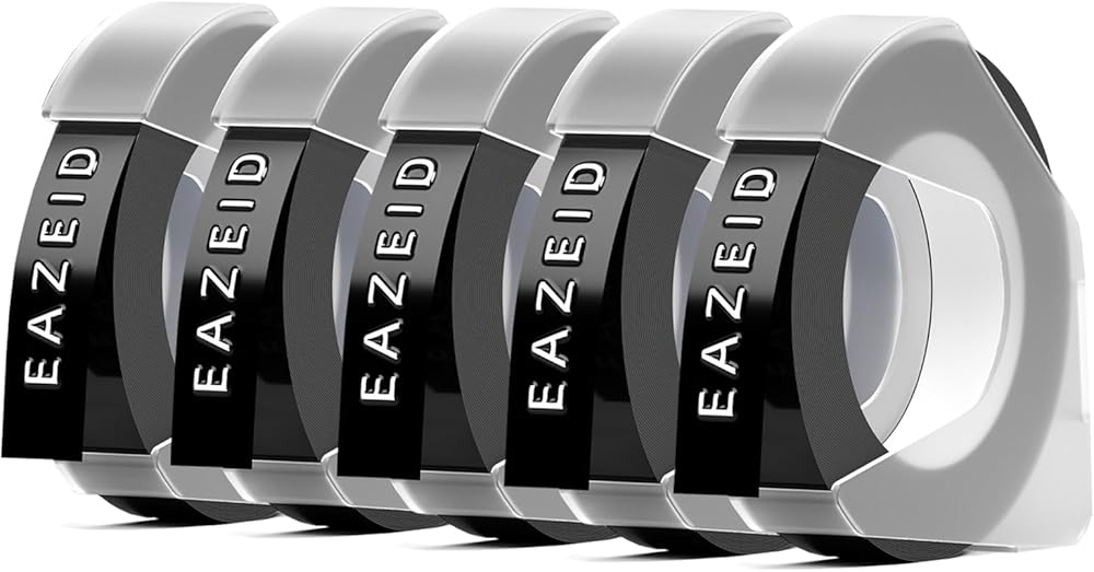 • تتضمن العبوة: 5 عبوات من شريط الملصقات النقش Dymo. اللون: شريط ملصق منقوش باللون الأبيض على الأسود، الحجم: 3/8 بوصة (9 مم) × 9.8 قدم (3 م)