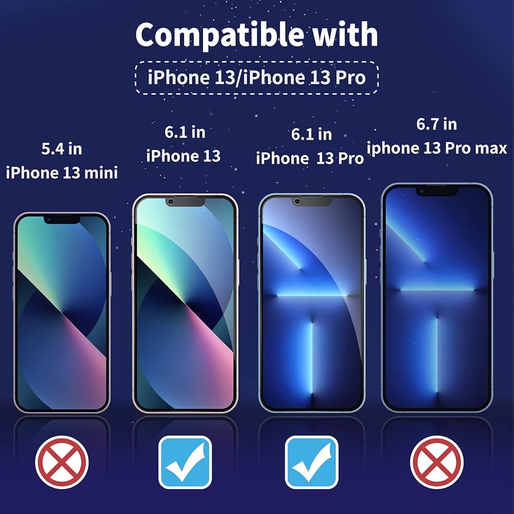 [تغطية كاملة] يناسب تمامًا هاتف iPhone 14/ 13/ 13 Pro. توفير أقصى قدر من الحماية لهاتفك. تم تصميم واقي الشاشة بفجوة صغيرة حول الحافة، ليكون متوافقًا تمامًا مع معظم حافظات الهاتف. يعمل واقي الشاشة مع الحافظة لتوفير الحماية الشاملة لهاتفك.