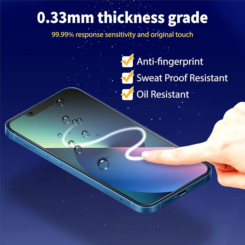 [لمس حساس] تحافظ شاشة الخصوصية الرفيعة للغاية على نفس الاستجابة وتجربة اللمس مثل الهاتف العاري. يتم معالجة سطح واقي الشاشة الواقي بطبقة بلازما مقاومة للزيوت، مما يمنع بصمات الأصابع بشكل فعال من العرق والشحوم.