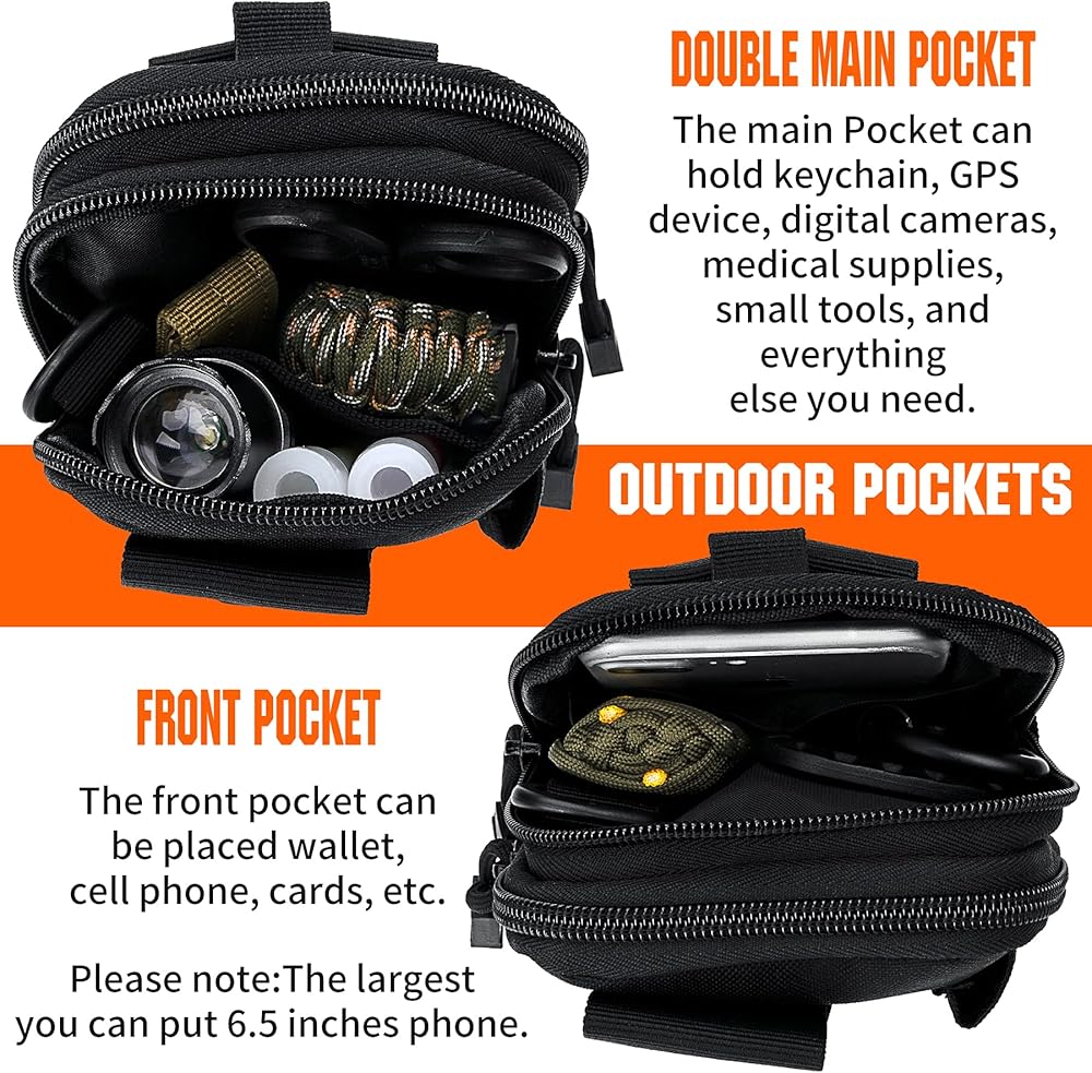 - سعة كبيرة: 2 جيب منفصل بسحاب، 1 جيب خارجي للهاتف و1 حامل أقلام. من السهل الوصول إلى جميع تروس EDC المحمولة بالجيب بالداخل. مثالية لتخزين الهاتف الخلوي، وسلسلة المفاتيح، وجهاز GPS، والكاميرا الرقمية، والأدوات الصغيرة، والقلم، والمحفظة، والكابلات وما إلى ذلك. رائعة للاستخدام في الهواء الطلق، والرياضات التكتيكية، والمشي لمسافات طويلة، والتسلق، واستخدام EDC.