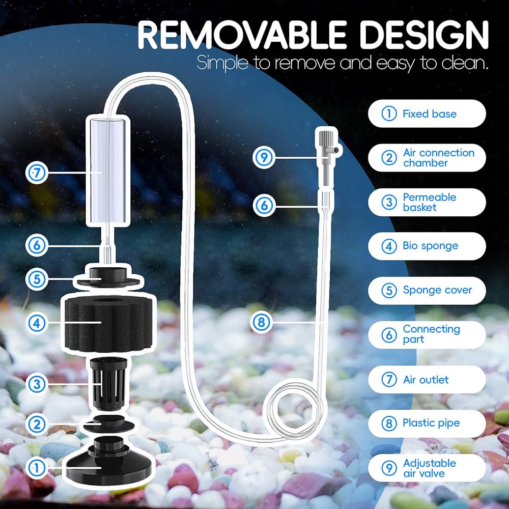 Our fish tank sponge filters provide efficient filtration system and easy maintenance, you can focus on enjoying the beauty of your aquarium without worrying about water quality.