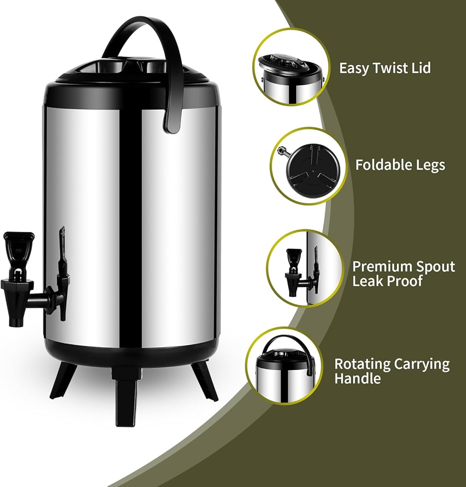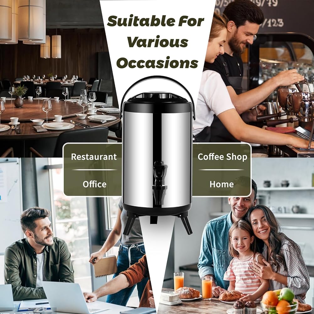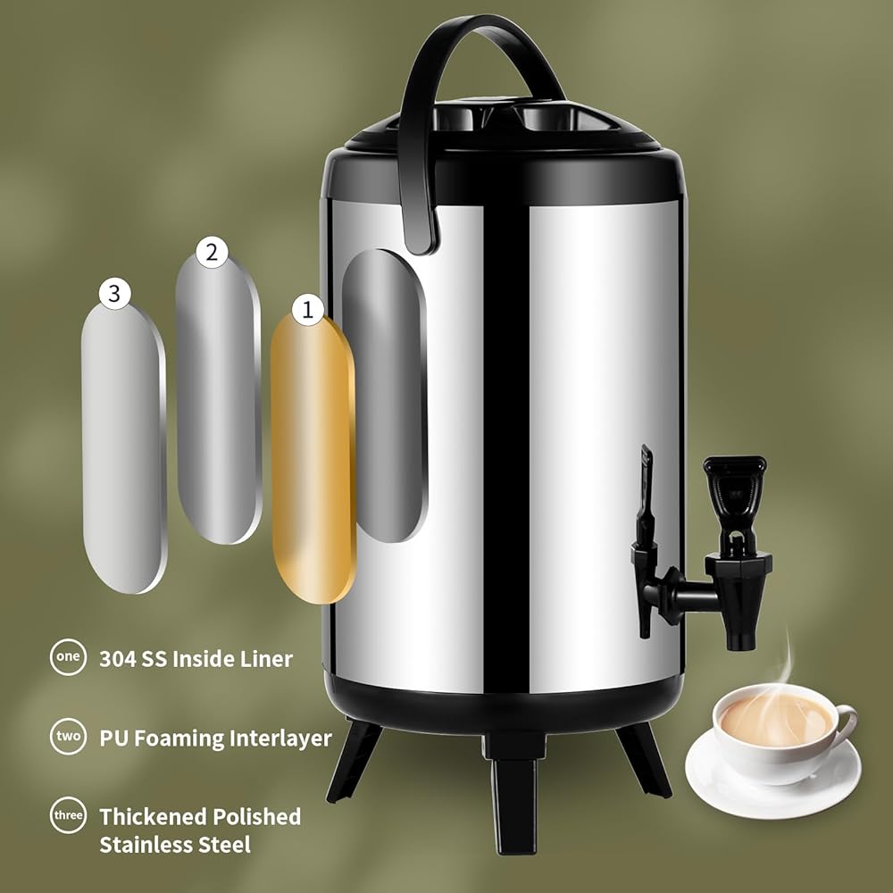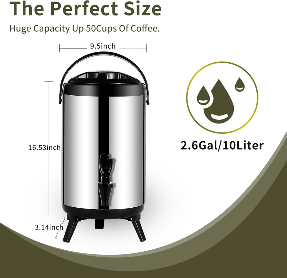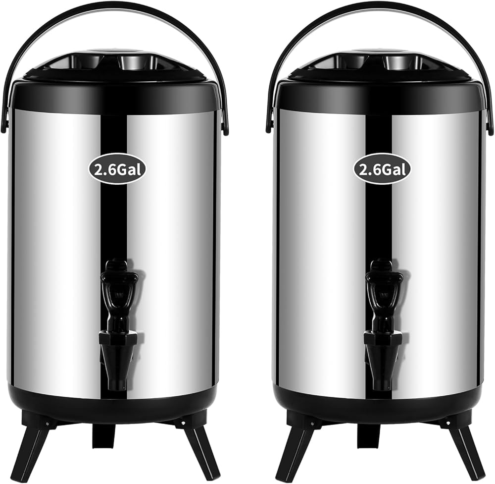 AGKTER 2 Pcs Insulated Beverage Dispenser,Stainless Steel Insulated Thermal Hot and Cold Coffee Carafe, 10 L/2.6 Gal Drink Dispenser with Spigot, Ideal for Hot Water, Tea, Coffee, Milk, Juice