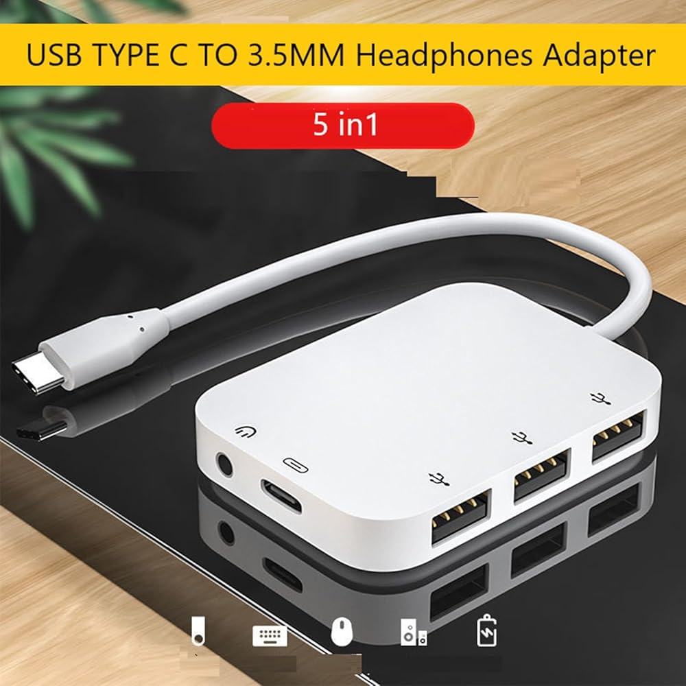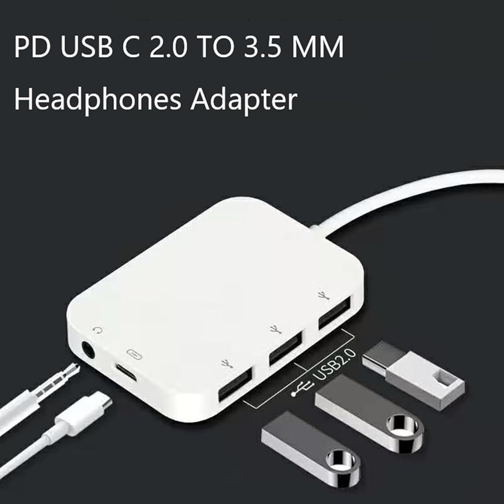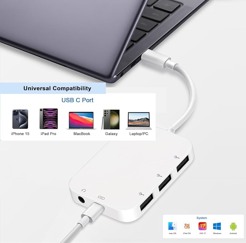 • 【5 in 1 USB C Hub for iPhone 16 iPad】The USB C dock has perfectly combined Various functions you need. USB C hub equipped with 1 x 100W USB-C fast charging ports, 3 x USB A data port, and 1 x 3.5mm headphone jack. This iphone aux adapter is the best choice to expand your iPad interface. Supports 5 ports work simultaneously.Compatible with iPhone 16/16 Pro/15 Pro Max / 15 Pro / 15 Plus / 15,for pixel 5 4 3 2 XL, for Galaxy Z Flip 3 5G,for Galaxy S24 S23 S22 S21,for iPad pro and more.
