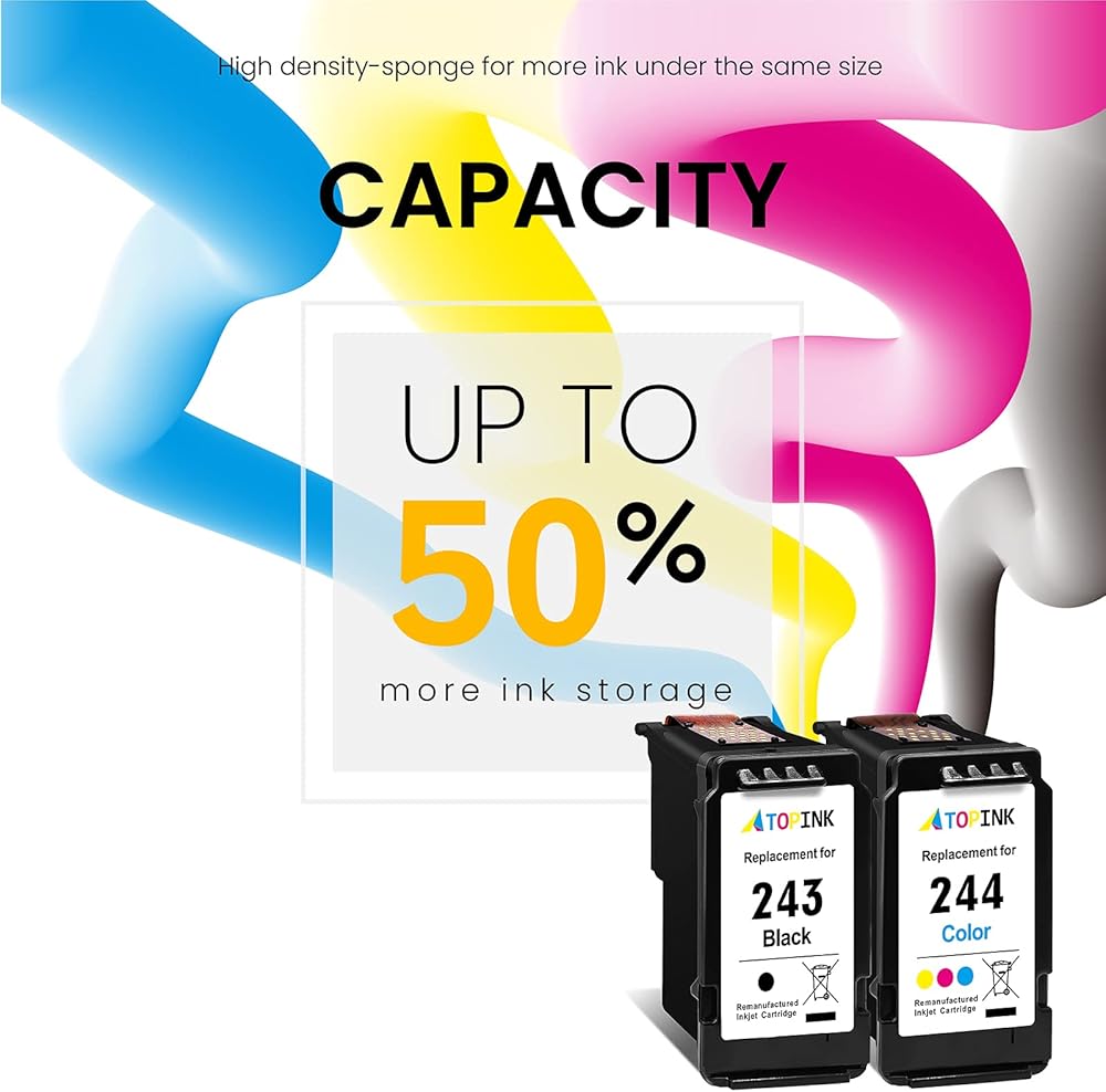 حبر الطابعة 243 244 لـ Canon 245 246، عالي الإنتاجية لحبر Canon PG-243 CL-244، لخراطيش الحبر Canon TS3420، مناسب لطابعة Canon Pixma MX492 MX490 MG3022 MG2920 MG2522 TR4520 TS3122 TS202 (عبوتان).