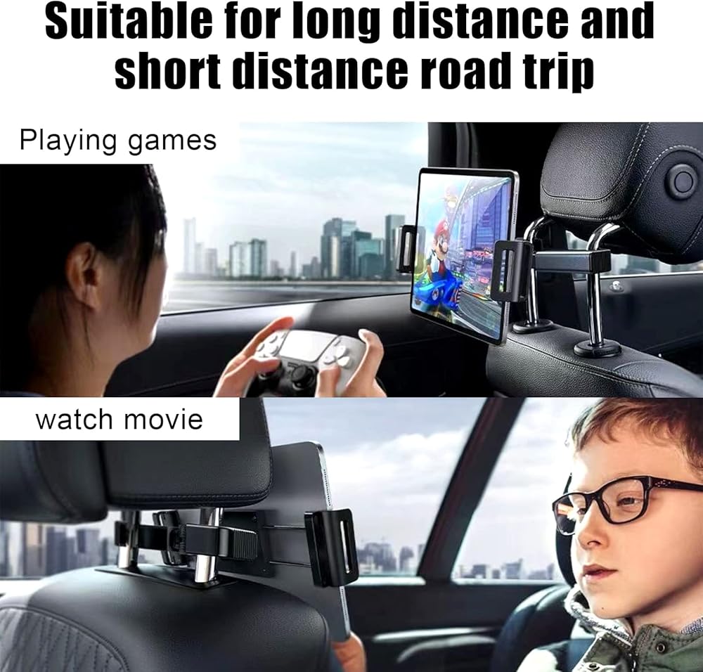 Sturdy and Safe: The hook's depth on both ends of the tablet car mount is deeper, greatly increases the stability during driving. One in a healthy sitting position without having to slouch to play with their phone or tablet. It is a perfect holiday companion that you can use in your car to have a great time on your road trip.