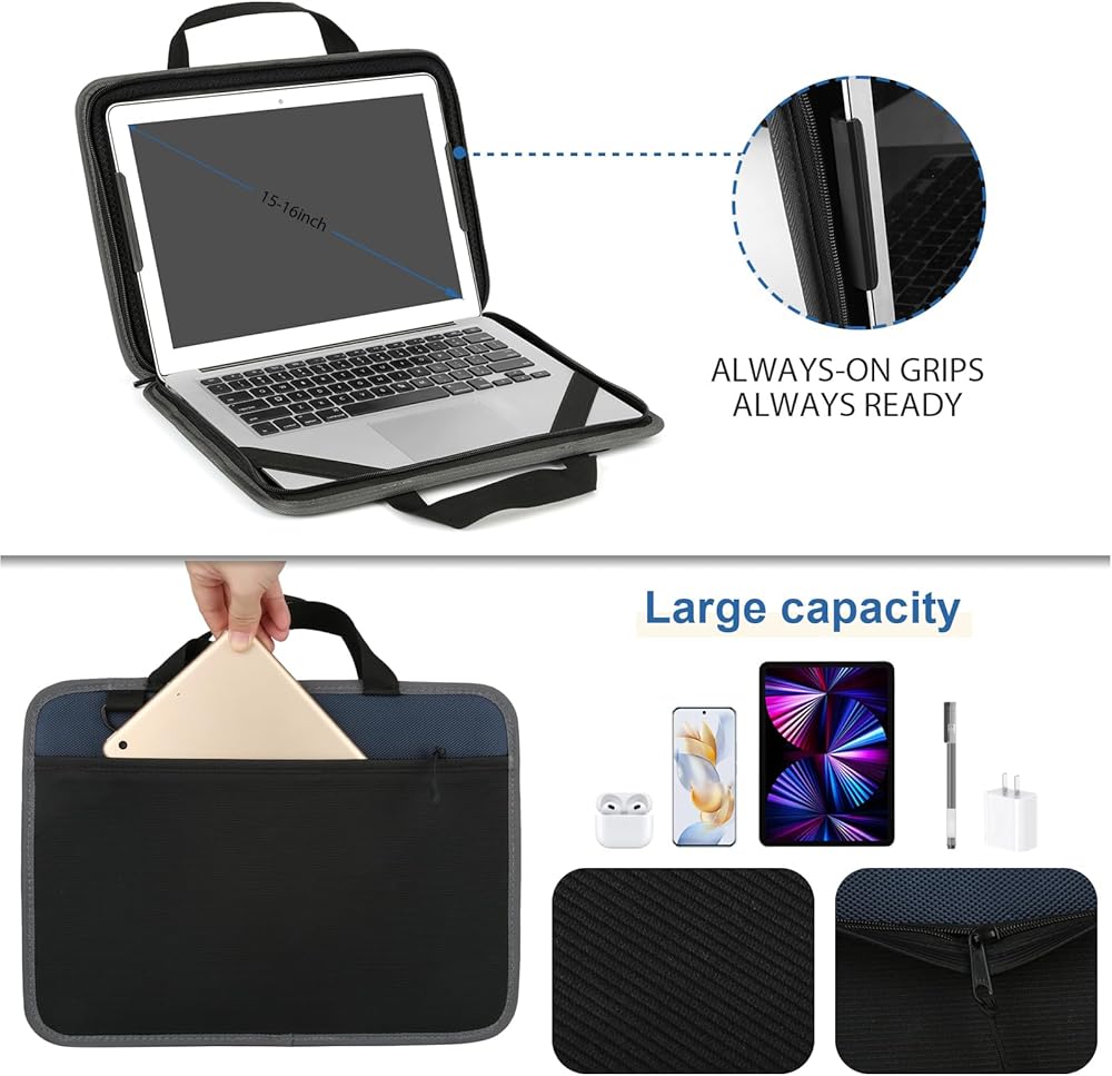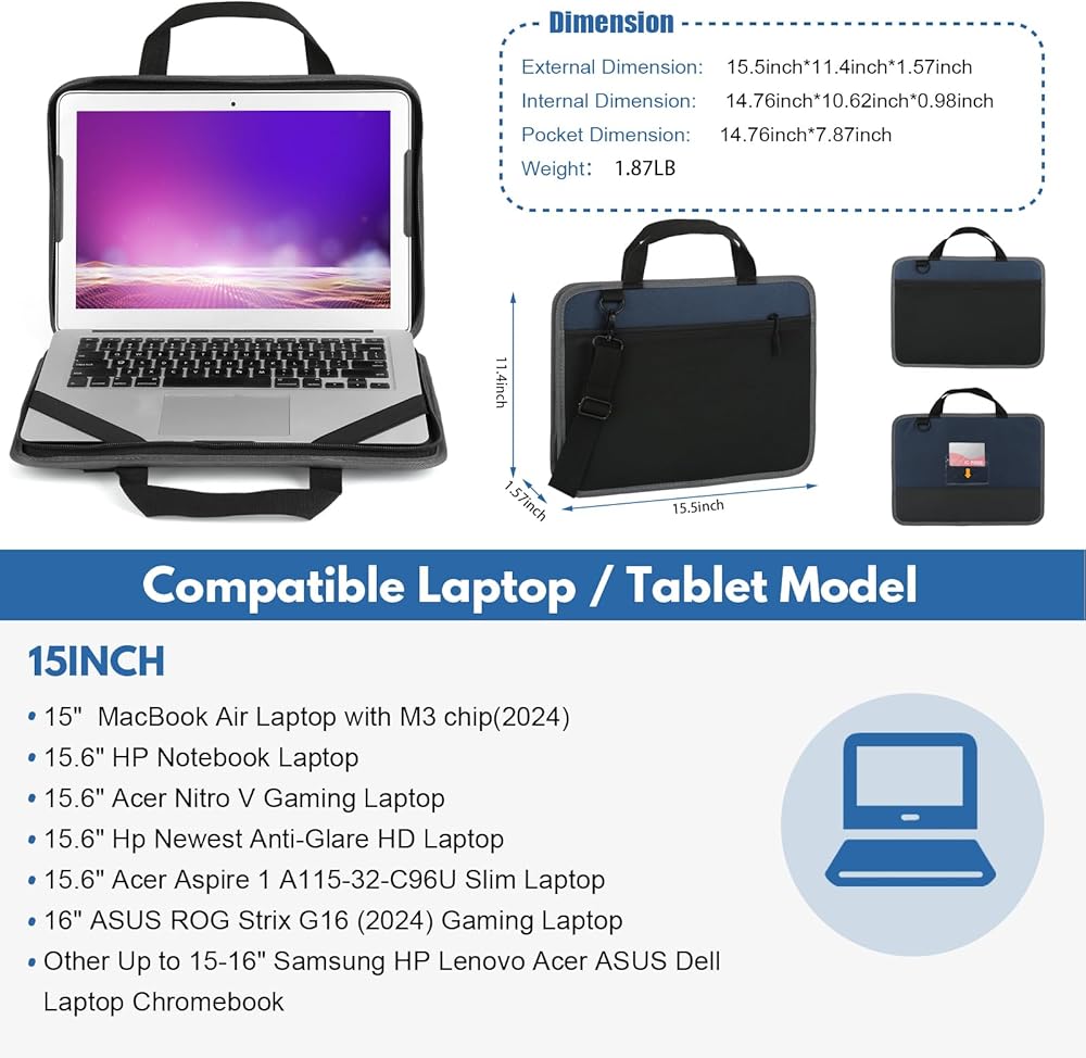 أبعاد حافظة الكمبيوتر المحمول: 15.55*11.4*1.57 بوصة (الطول × العرض × الارتفاع)، الأبعاد الداخلية للكمبيوتر المحمول: 14.76*10.43*0.98 بوصة (الطول × العرض × الارتفاع)؛ مناسب لمعظم أجهزة الكمبيوتر المحمولة مقاس 15-16 بوصة.
