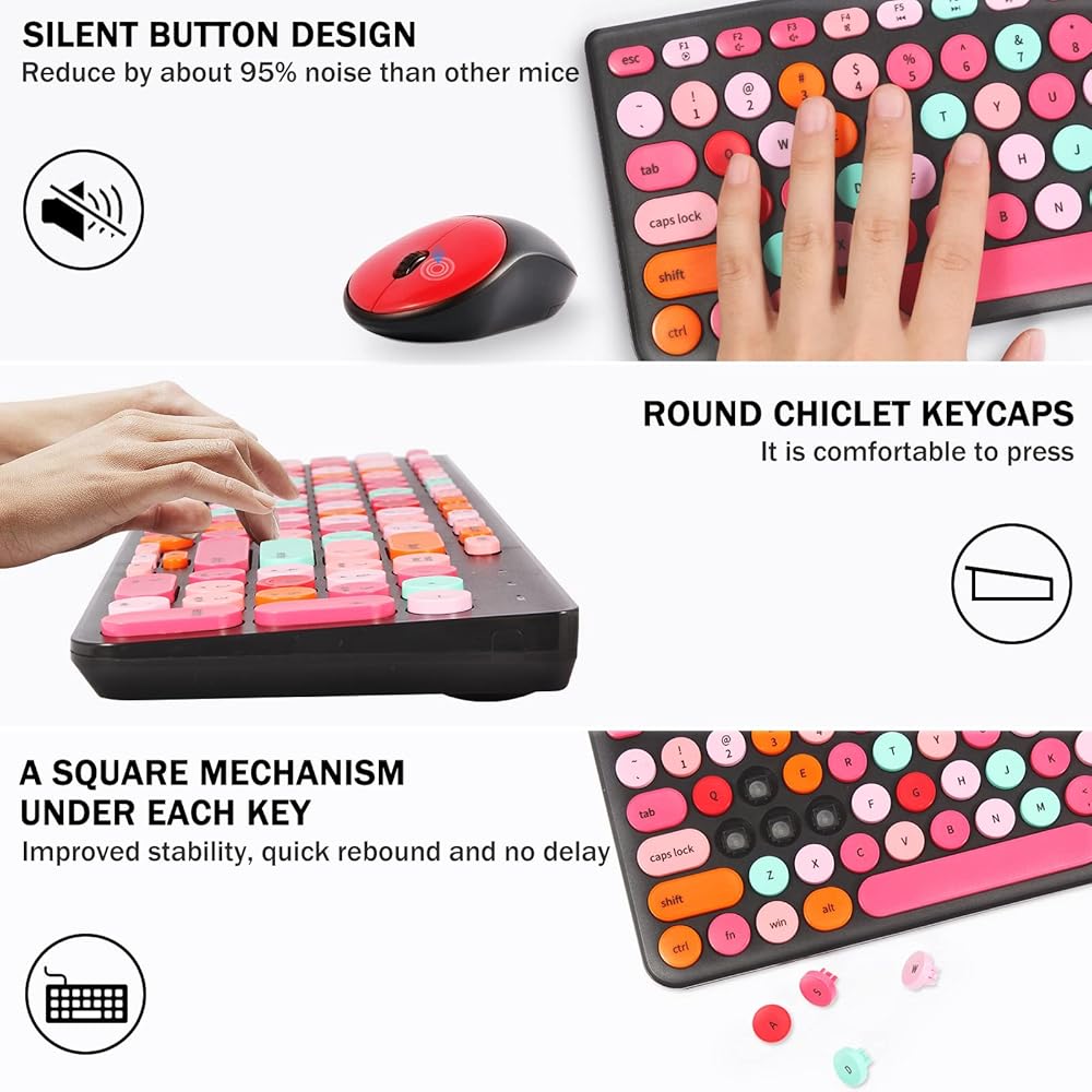 [Sensitive Response & Retro Round Keycaps Computer Keyboard] Adopts noise reduction keys, a square mechanism under each key improved stability, quick rebound and no delay. The retro round concave keycap matches the shape of your fingertips, and it is comfortable to press, just like typing on an old-fashioned typewriter, and your hands will not feel tired during long-term office work.