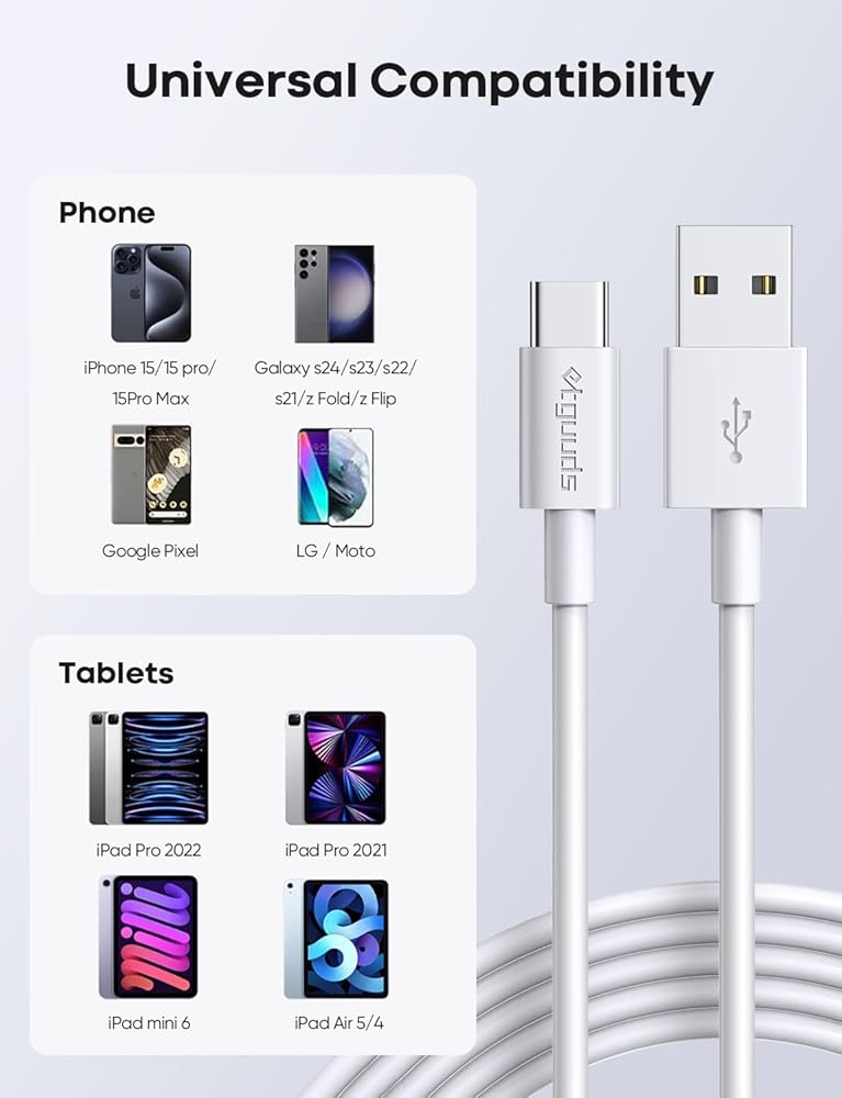 • التوافق على نطاق واسع: كابل etguuds USB C متوافق جيدًا مع iPhone 16 15/16 15 Pro/16 15 Pro Max/16 15 Plus، لجهاز iPad 10th Gen، iPad Pro 12.9/11 بوصة، iPad Air 5th 4th، Mini 6th Gen، لهاتف Samsung جالاكسي S24 S23 S22 S21