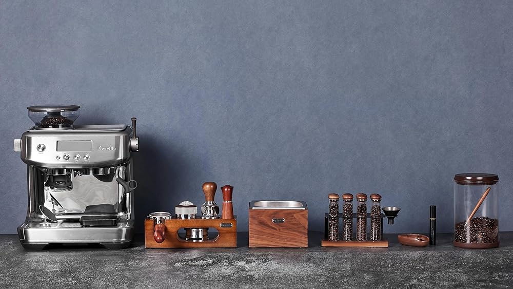 مجموعة كاملة من ملحقات الإسبريسو لبريفيل: تحتوي قنوات القهوة الاحترافية Teyearlife على ملحقات ماكينة الإسبريسو المصنوعة من الخشب الصلب المصنوعة من الفولاذ المقاوم للصدأ التالية: المكبس، ومحطة الدك، ومرشح القهوة بدون قاع مقاس 54 مم، وقبو الفول، وصندوق الدق، وأداة WDT
