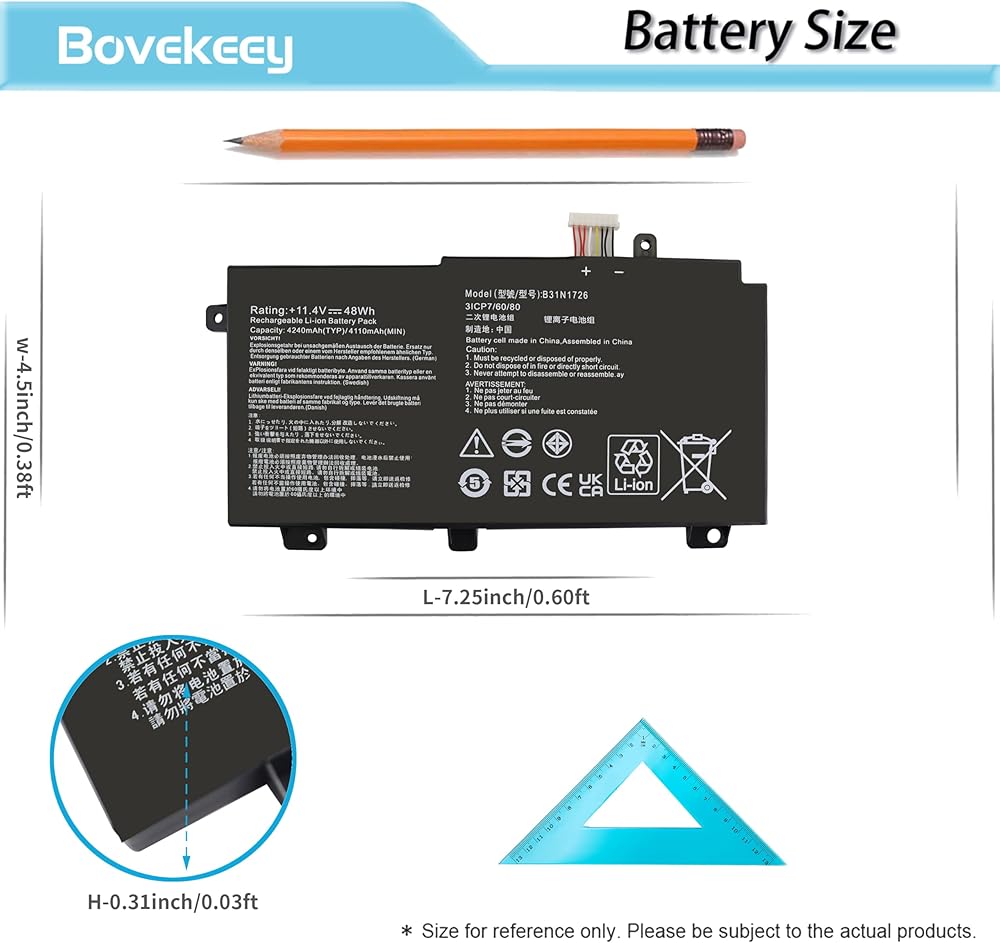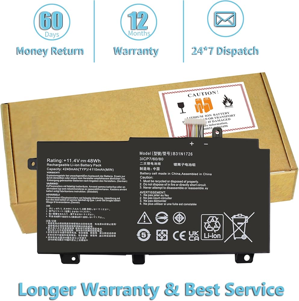 • 【COMPATIBLE P/N】- The 48w battery works for B31N1726-1, B31N1726, B31BNEH, B31BN91, A41LK9H, 0B200-02910000.