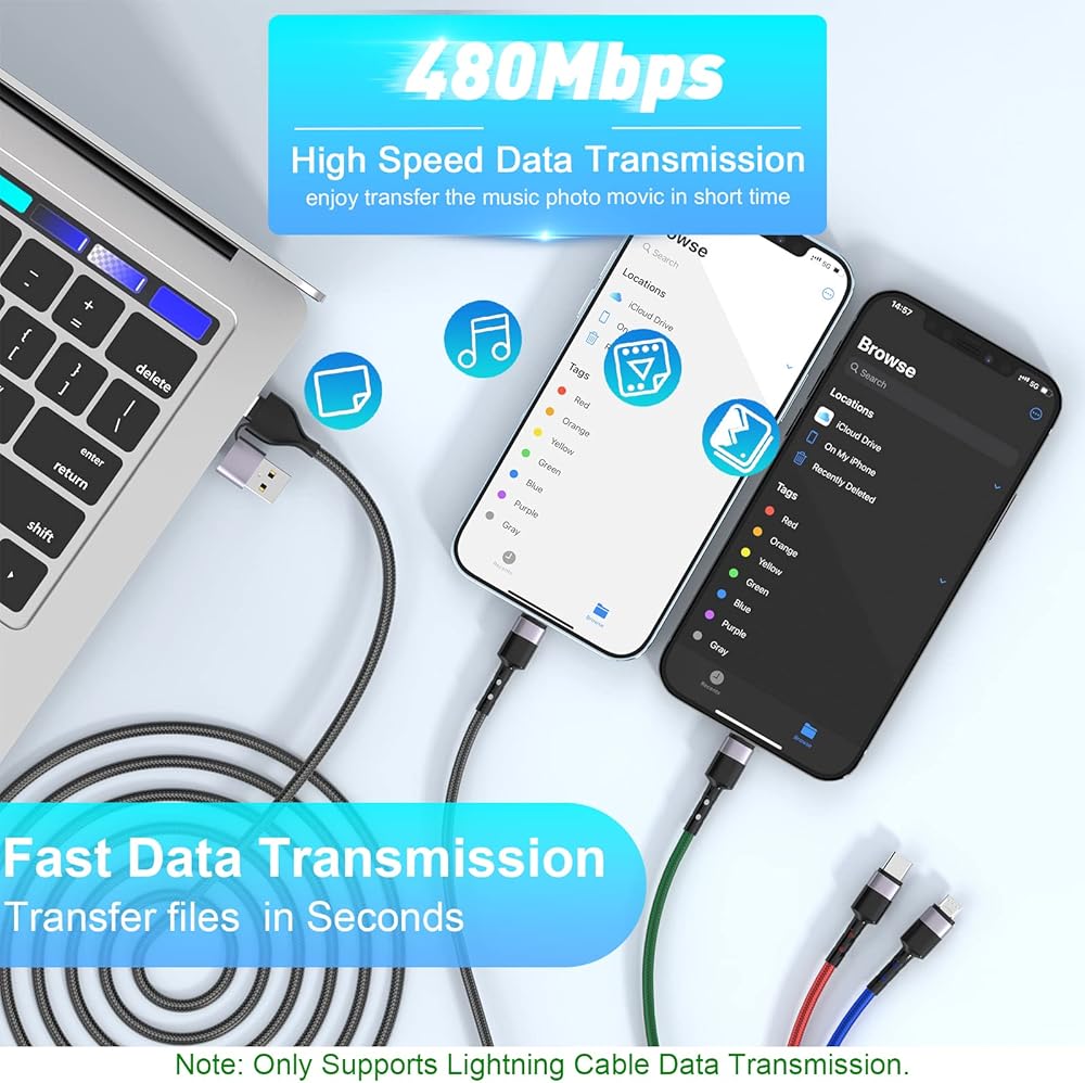 • [3M length] The Multiple 10FT data cable is suitable for use in bedrooms, living rooms, cars, coffee shops, travel, and other occasions. The ideal length allows you to easily lie on the bed/sofa without worrying pull the cable.