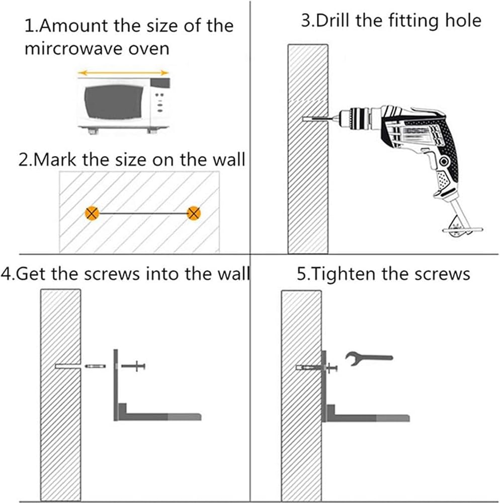 【Easy to Install】:This Microwave Mounting Kit Comes with Mounting Accessories, Screws and Anchors.Use Only the Screws and Four Corner Fixing Slots to Securely Fasten the Microwave Oven to Avoid Wobbling and Increase the Strength of the Microwave Oven. Step by Step Instructions Equipped, Easy to Fix Them on to the Wall at a Few Minutes.