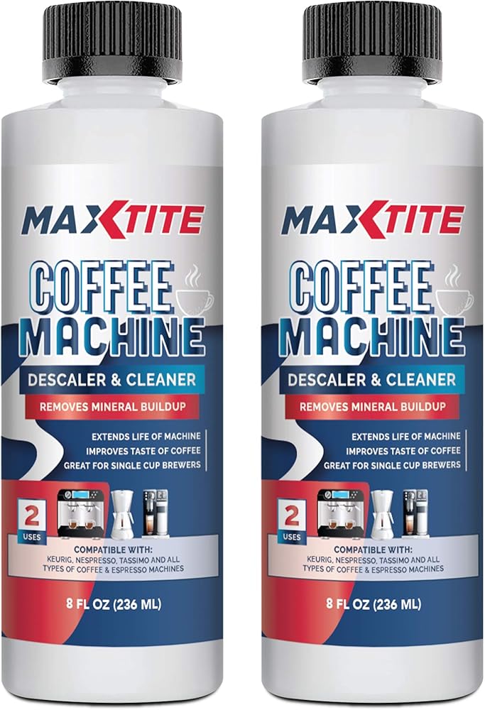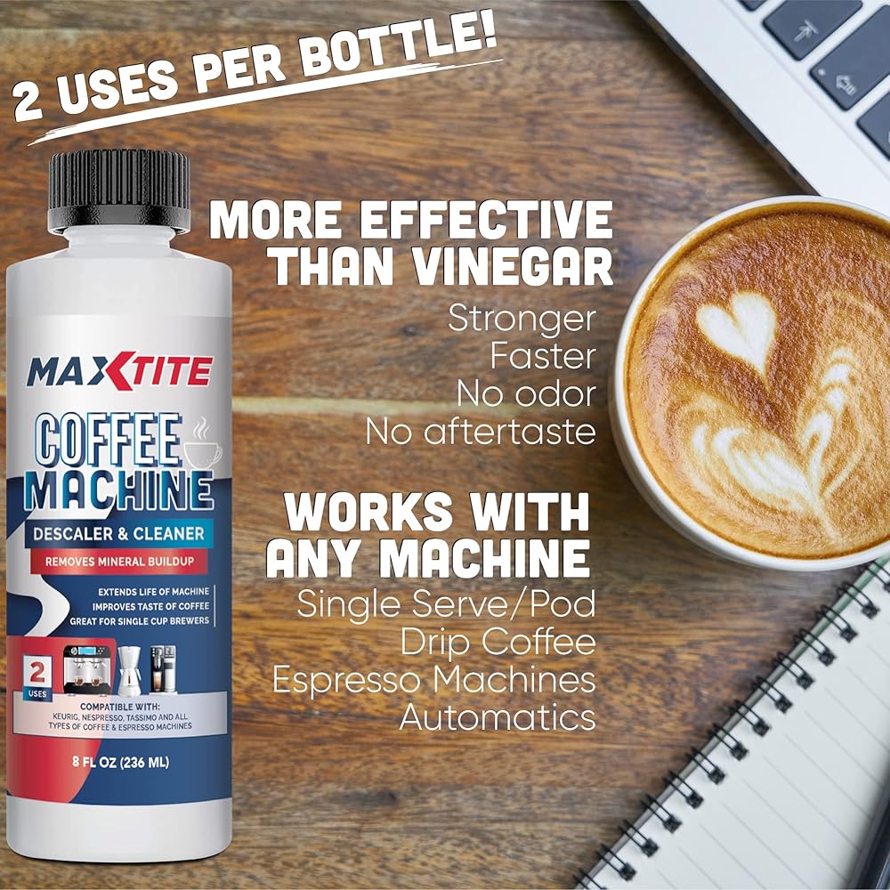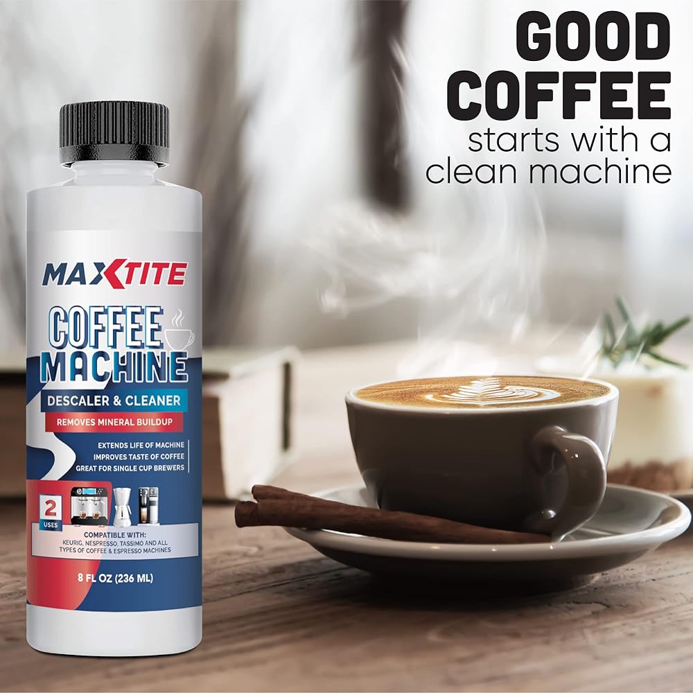 MaxTite Coffee Machine Descaler & Cleaner works fast! Not only does it preserve the performance of your coffeemaker, it also preserves the taste of your coffee. This simple, cost-effective, efficient and ecofriendly cleaner will extend the life of your machine and keep your coffee tasting great. Keep your machine running smoothly and eliminate any distasteful mineral flavor. This product is a low cost, high-value home essential—even better, it's clean, green, and socially responsible, safe for the environment and for your home. This citric acid based cleaner is leaves no aftertaste and delivers powerful results without harsh chemicals. It's odor free and easily rinsed away.