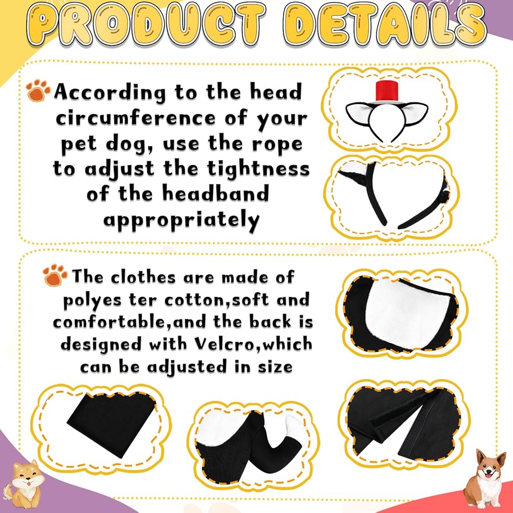 • Versatile Ear Headband: the set comes with an elastic ear headband that fits comfortably around your pet's head; This headband adds that extra distinctive touch to your pet's costume, making it an essential for your pet's wardrobe