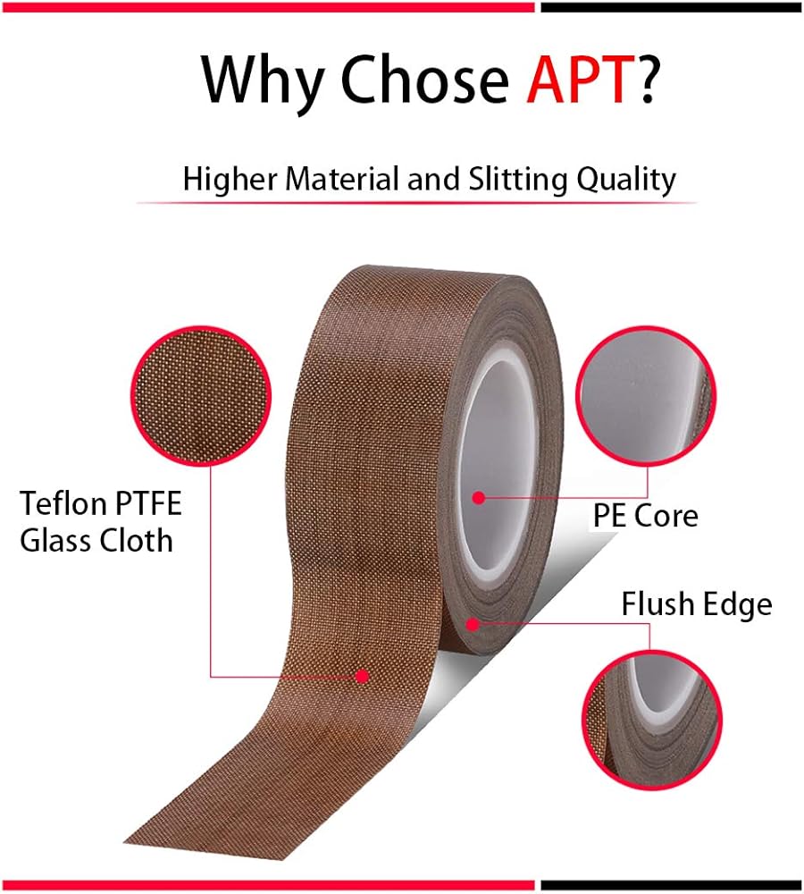 شريط قماش زجاجي من APT Teflon PTFE، درجة حرارة عالية، شريط حقيبة مفرغة، أجزاء مانعة للتسرب من ويستون، أجزاء مانعة للتسرب لحفظ الطعام، ختم وجبة، كابيلا وغيرها الكثير (2 بوصة × 27 قدم)