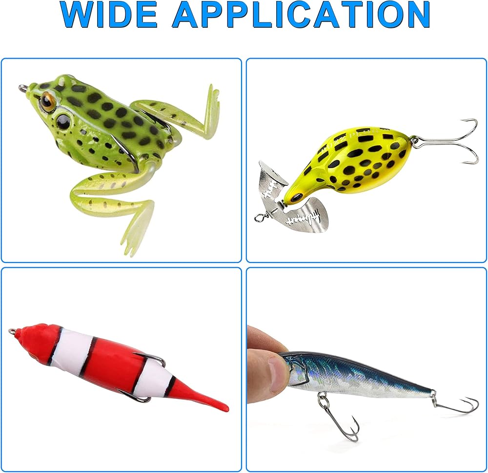 مناسبة لـ - يمكن تركيب خطافات الصيد المزدوجة بسرعة على الطُعم بدون حلقة مقسمة. رائعة لمجموعة كبيرة من الطعوم. مناسبة للمياه المالحة والمياه العذبة