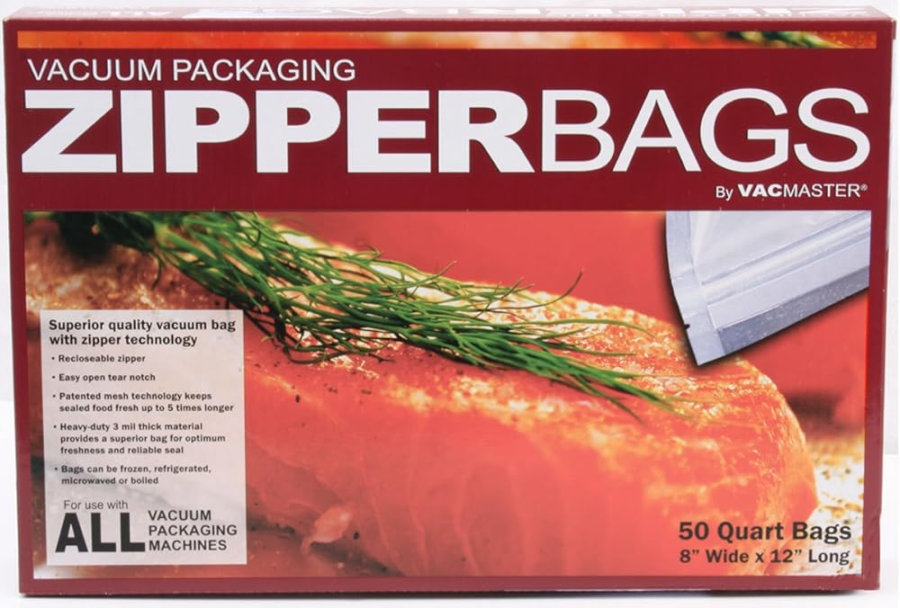 Using VacMaster Full Mesh Zipper Vacuum Packaging Bags are the ideal packaging solution for your busy life. Zipper bags are perfect for frequently used food items, store shredded cheeses or bacon and keep fresher longer in the refrigerator. 8 Inch wide x 12 Inch long equivalent to a Quart. Our mesh technology guarantees superior performance on all vacuum sealers, keeping your food and game fresh up to 5x longer than traditional storage methods. Now featuring dispenser boxes, to help you stay organized.