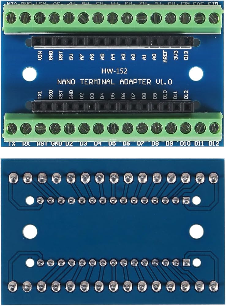 An additional expansion board which brings the I/O out to a series of screw terminals that can be handy for projects that are interfacing with a lot of wiring.