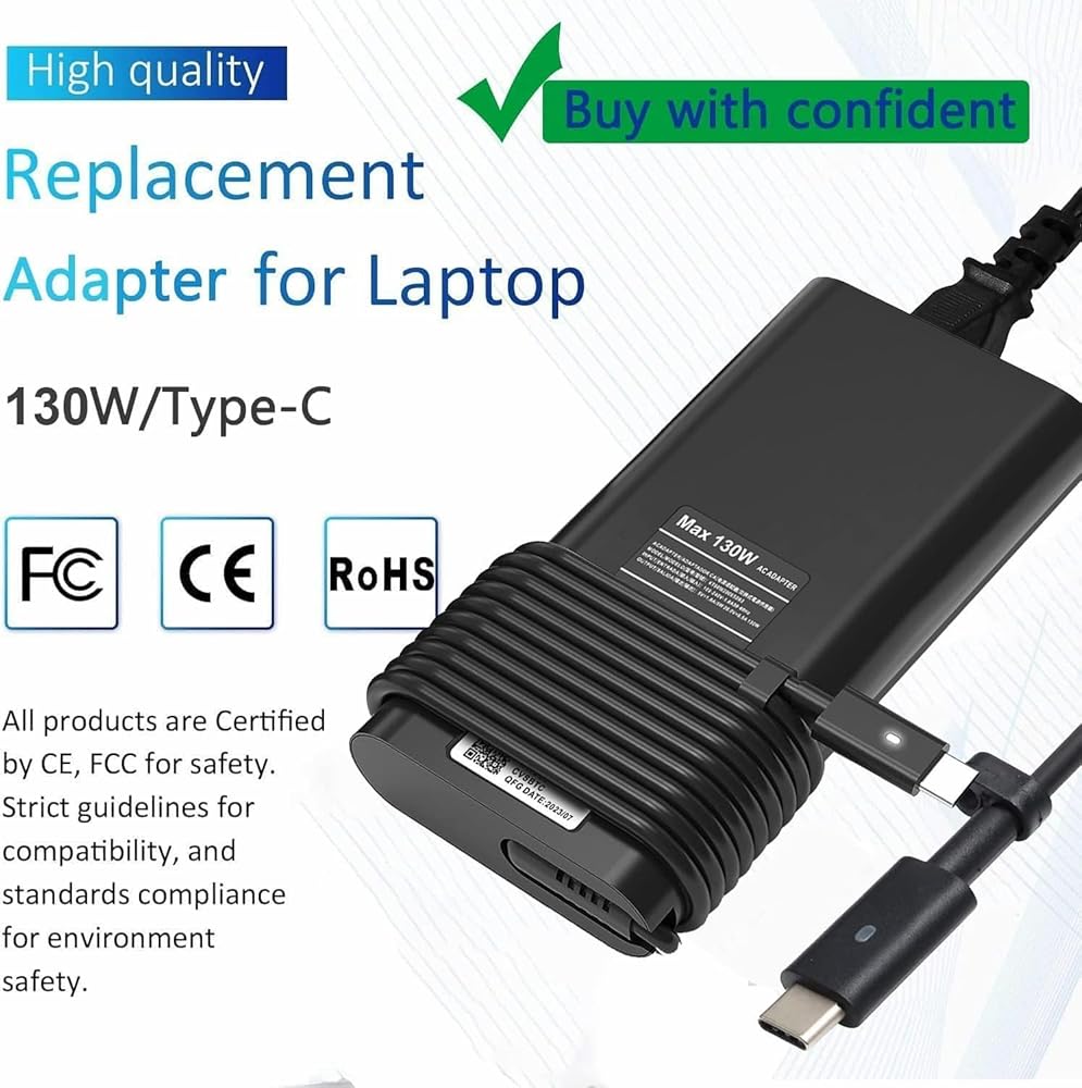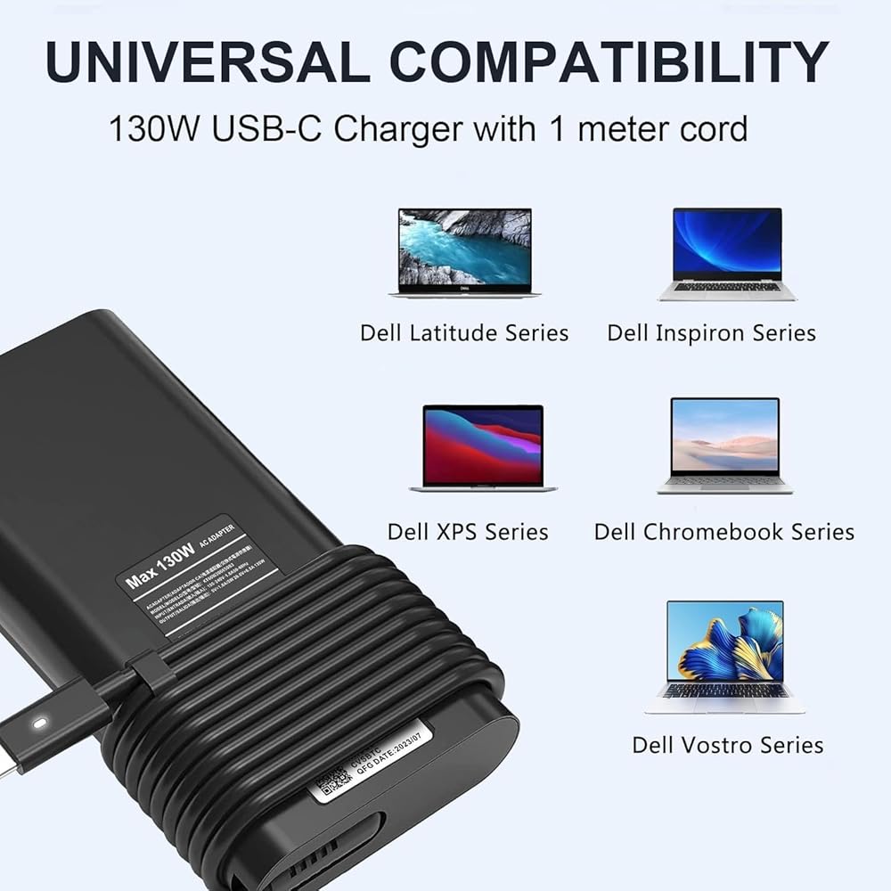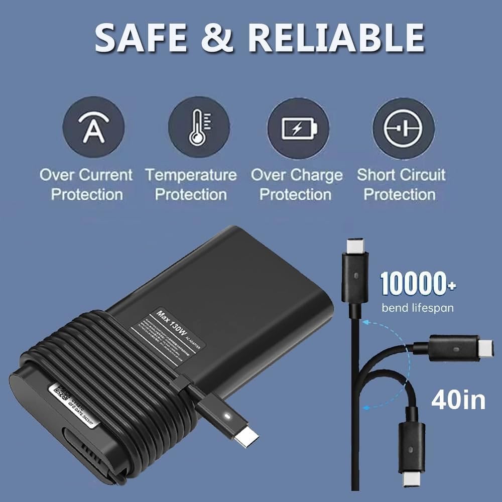 【متوافق مع Dell】 XPS 15 9500 9510 9520 9575 2 في 1، XPS 17 9700 9710 9720؛ الدقة 3470 3541 3551 3560 3561 3570 3571 5470 5550 5560 5570 5750 5760 5770 الدقة 5530 2in1؛ خط العرض 9510 9410 7410 7310 7210 5531 5521 5520 5511 5510 5501 5420 5431 5421 5411 5401 5410 5400 5320 5310 3500 3400; 7500 7501 16 7000 (7620) Vostro 7500 Vostro 16 7000 (7620) والمزيد من طرازات الكمبيوتر المحمول dell بقدرة 130 وات مع منفذ شحن USB C.