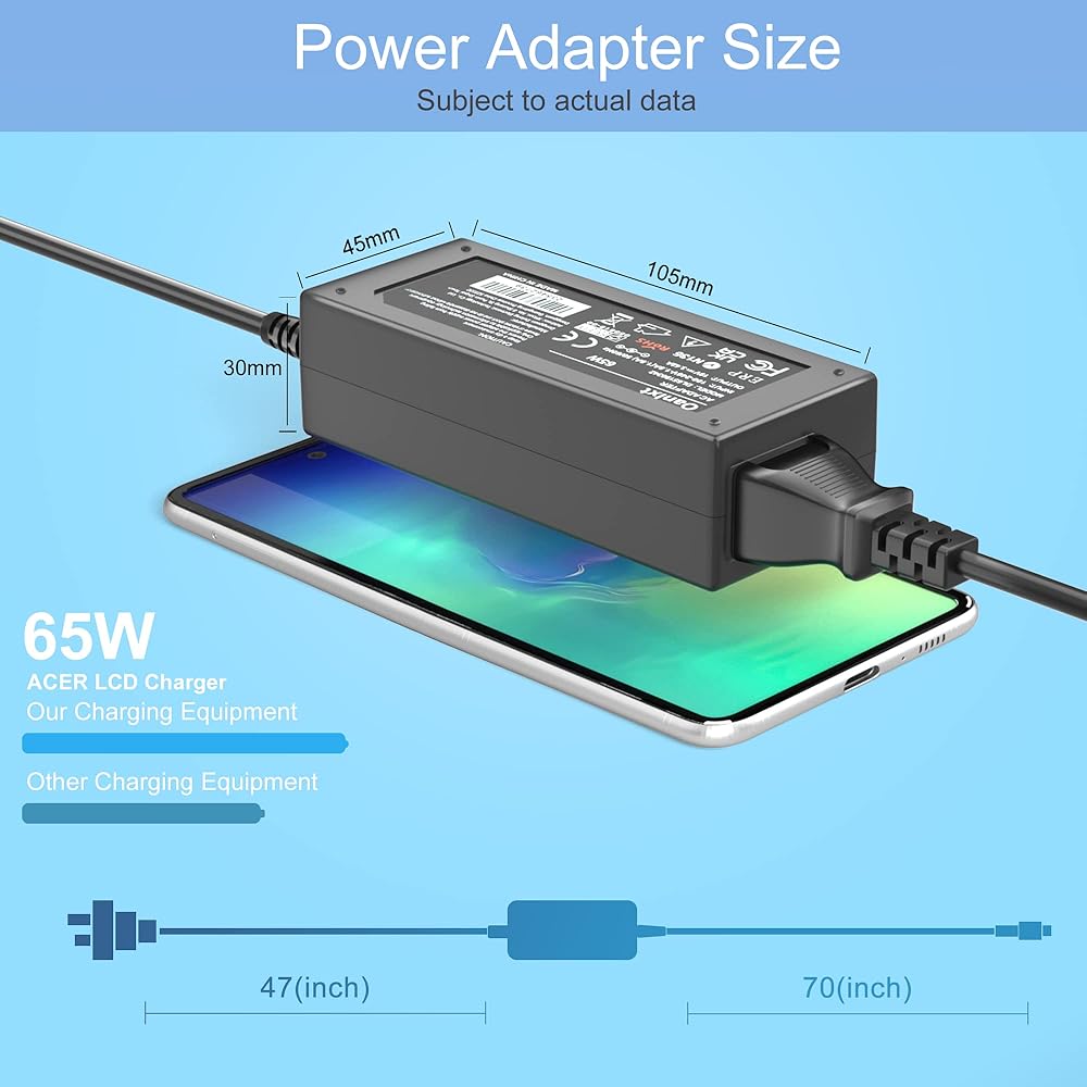 • 💻【حماية السلامة】: شاحن شاشة LCD البديل من Acer مصنوع من مواد مقاومة للهب ومقاومة للماء ومصمم بأنظمة حماية ذكية. حماية من قصر الدائرة، حماية من الشحن الزائد، حماية من درجة الحرارة، شحن سريع. تتوافق مع معايير UL/FCC/CE.