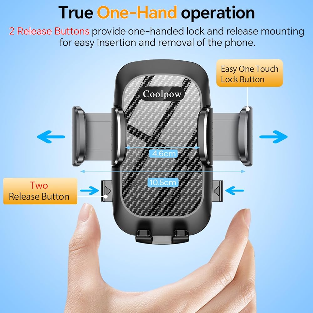 Easy One-Button Release : With our innovative design, you can easily release your phone with just one press of a button. The curved arm and extendable feet of our holder allow for quick and simple operation. Simply press the button to slide open and take out your phone, and then press the arms to clamp it securely back in place. No more fumbling or struggling to remove your phone from the holder!