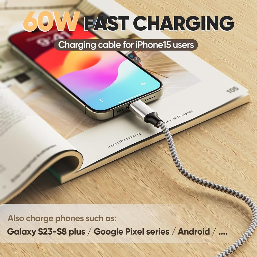 • شحن فائق السرعة 60 وات: تعرف على سرعة الشحن السريعة لمعظم الهواتف المحمولة (QC 3.0)، مع أقصى إخراج 60 وات، مصمم خصيصًا لشحن مستخدمي iPhone 15 وأجهزة USB-C الجديدة الأخرى مثل الأجهزة اللوحية وأجهزة الكمبيوتر المحمولة