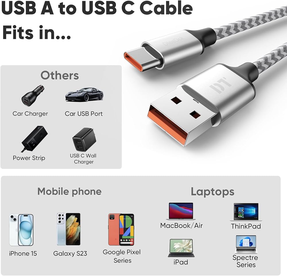 • خدمة DT المدروسة: سوف تحصل على 2 * كابل usb-a إلى usb-c بطول 6 أقدام بعد الشراء. لدينا أيضًا خدمة عملاء ودية ودعم فني مدى الحياة، وتحسين جودة المنتج مع تقديم أفضل خدمة لك