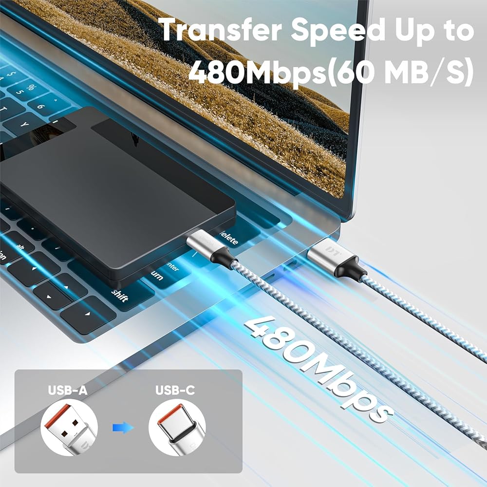 • وظيفة نقل 480 ميجابايت في الثانية: نقل بيانات مزامنة عالية السرعة بسرعات تصل إلى 480 ميجابايت في الثانية (60 ميجابايت في الثانية)، كابل USB من النوع C دون أي مشاكل للاستخدام اليومي