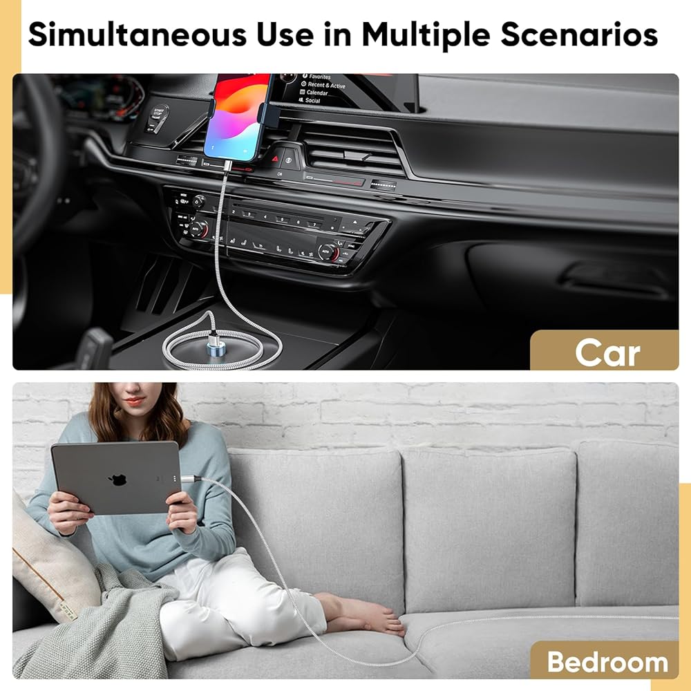 • تطبيق سيناريوهات متعددة: تم اعتماد هذا USBA إلى USBC للسلامة، مما يقلل من خطر ارتفاع درجة الحرارة أثناء الشحن. يمكنك الاطمئنان إلى تجهيز شاحن بمنفذ C في السيارة وواحد في غرفة النوم