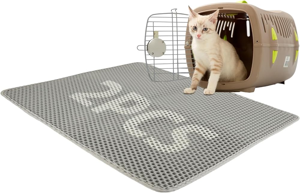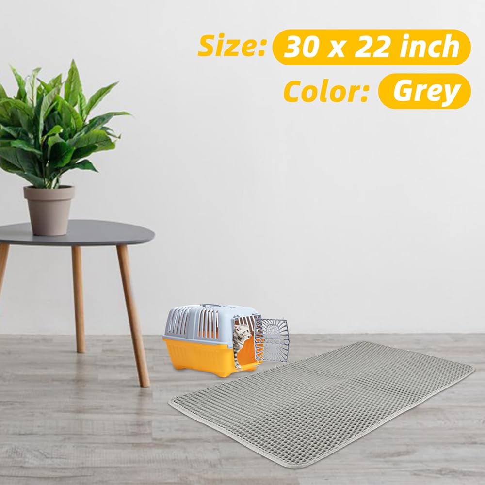 قطعتان من سجادة فضلات القطط - سجادة محاصرة فضلات مزدوجة الطبقات على شكل قرص العسل، سجادة صندوق القطط باللون الرمادي، يمكن غسلها في الغسالة، غير قابلة للانزلاق، تحكم في التناثر (30 × 22 بوصة)