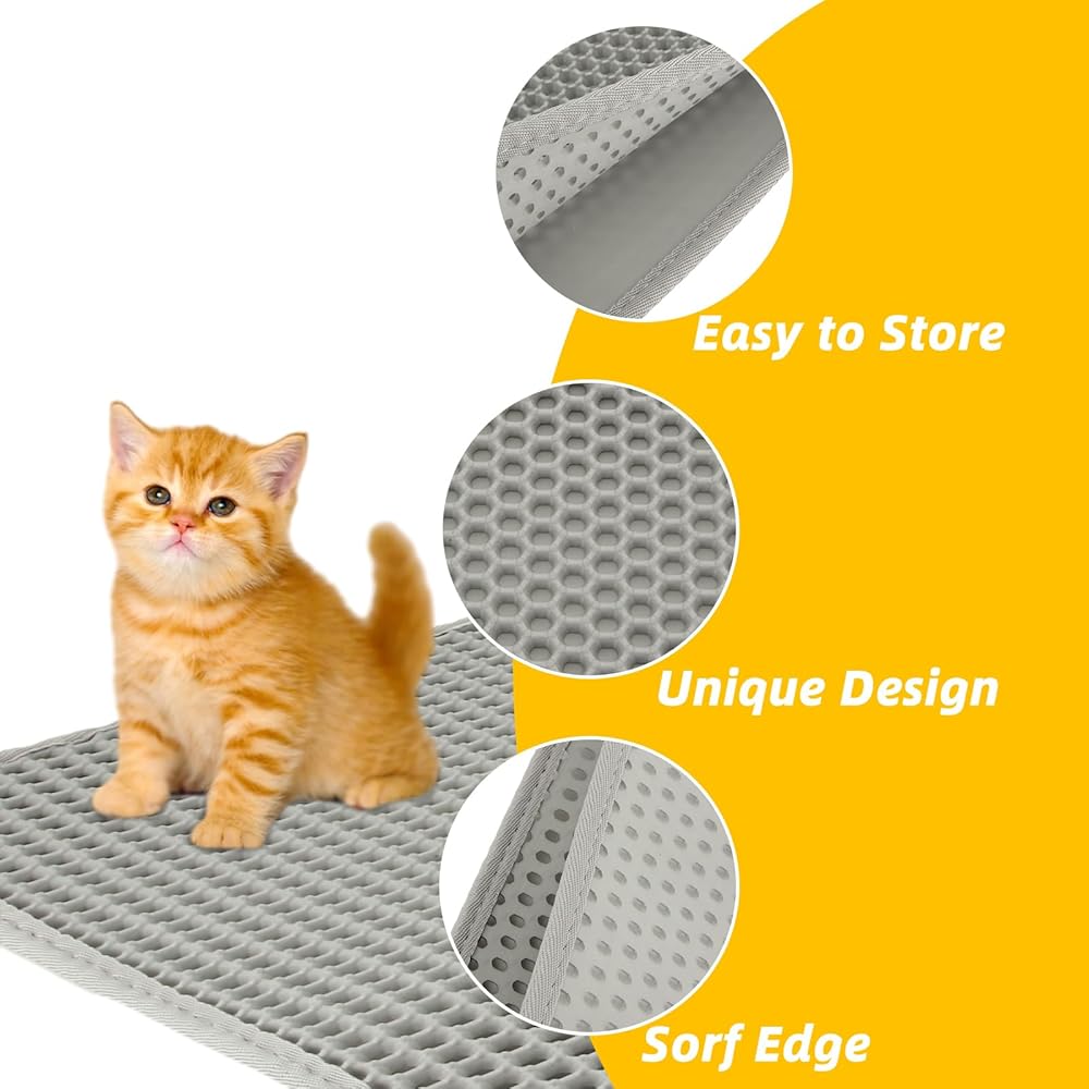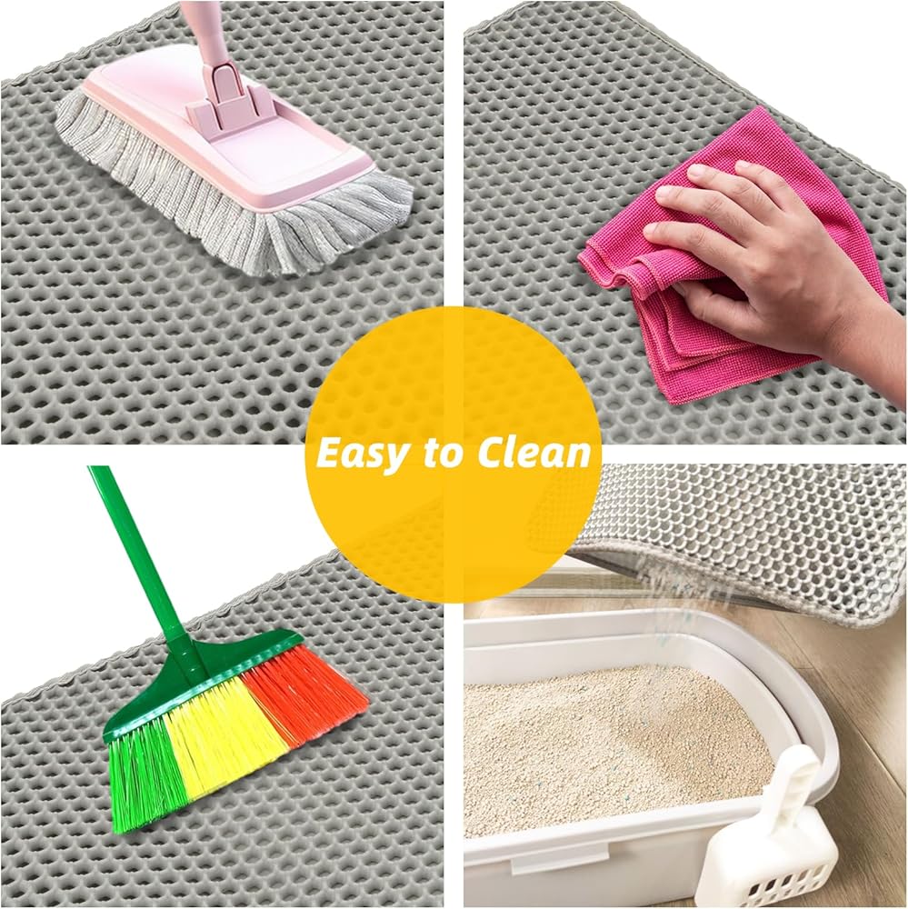 • 👍High-Quality Materials: The bottom layer of this cat litter mat is made of high-quality absorbent and leak-proof material, preventing unpleasant odors and cat urine from seeping into hardwood floors and carpets.
