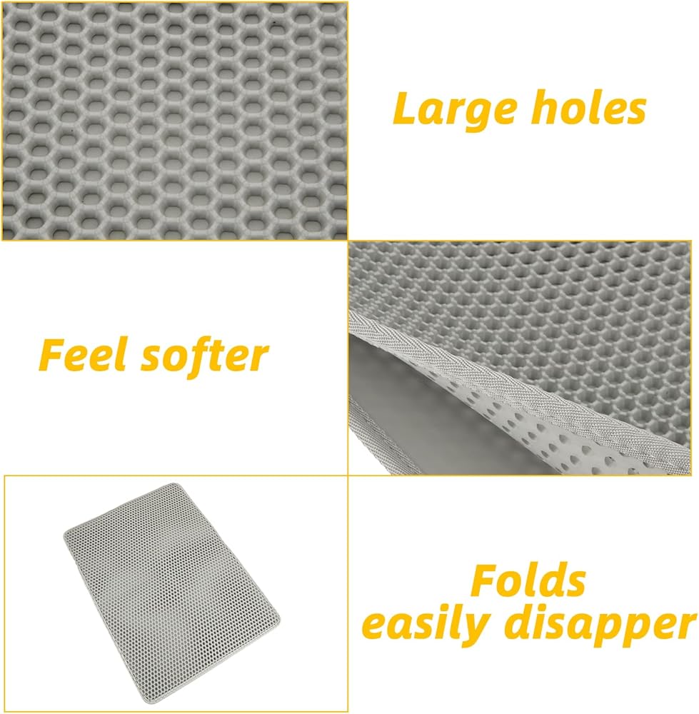 • 👍Honeycomb Double-Layer Design: The large honeycomb grid and double-layer design make it easier to capture and collect trash. Simply lift the mat and pour the trash into the garbage can for easy disposal.