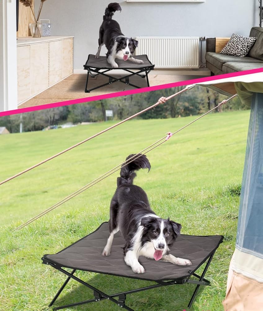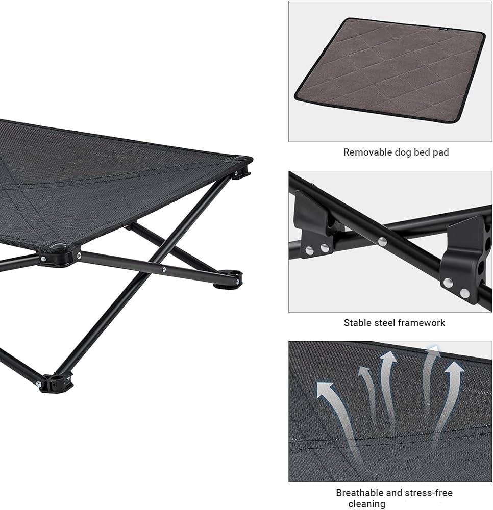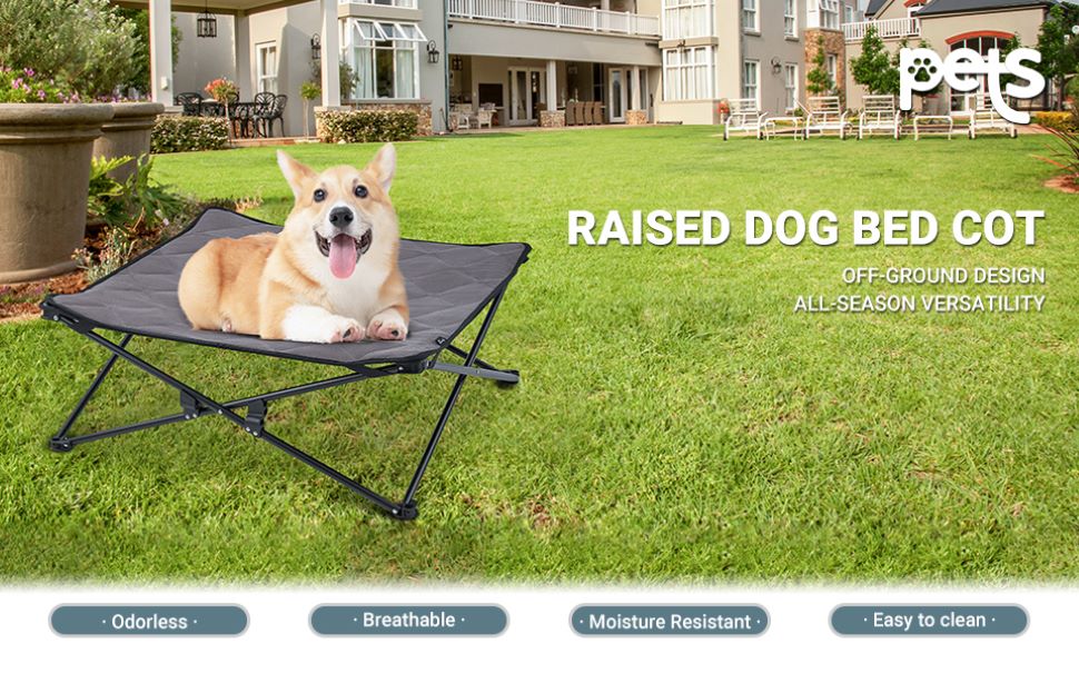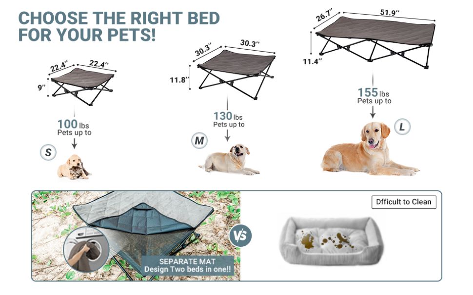 3.الأرضية لا أكثر! ابق هادئًا على الإطلاق! مصنوع من قماش شبكي في المنتصف، يسمح السرير بتدفق الهواء، مما يبقيه باردًا أثناء استرخائه في الحرارة. يتميز نسيج Textilene بأنه مقاوم للحرارة، وقوي، وجيد التهوية. النوم مع سرير مرتفع للكلب أكثر راحة ونظافة وجفافًا وصحة مقارنة بالأرض. ابق هادئًا في ذروة الصيف أو مريحًا في فصل الشتاء!
