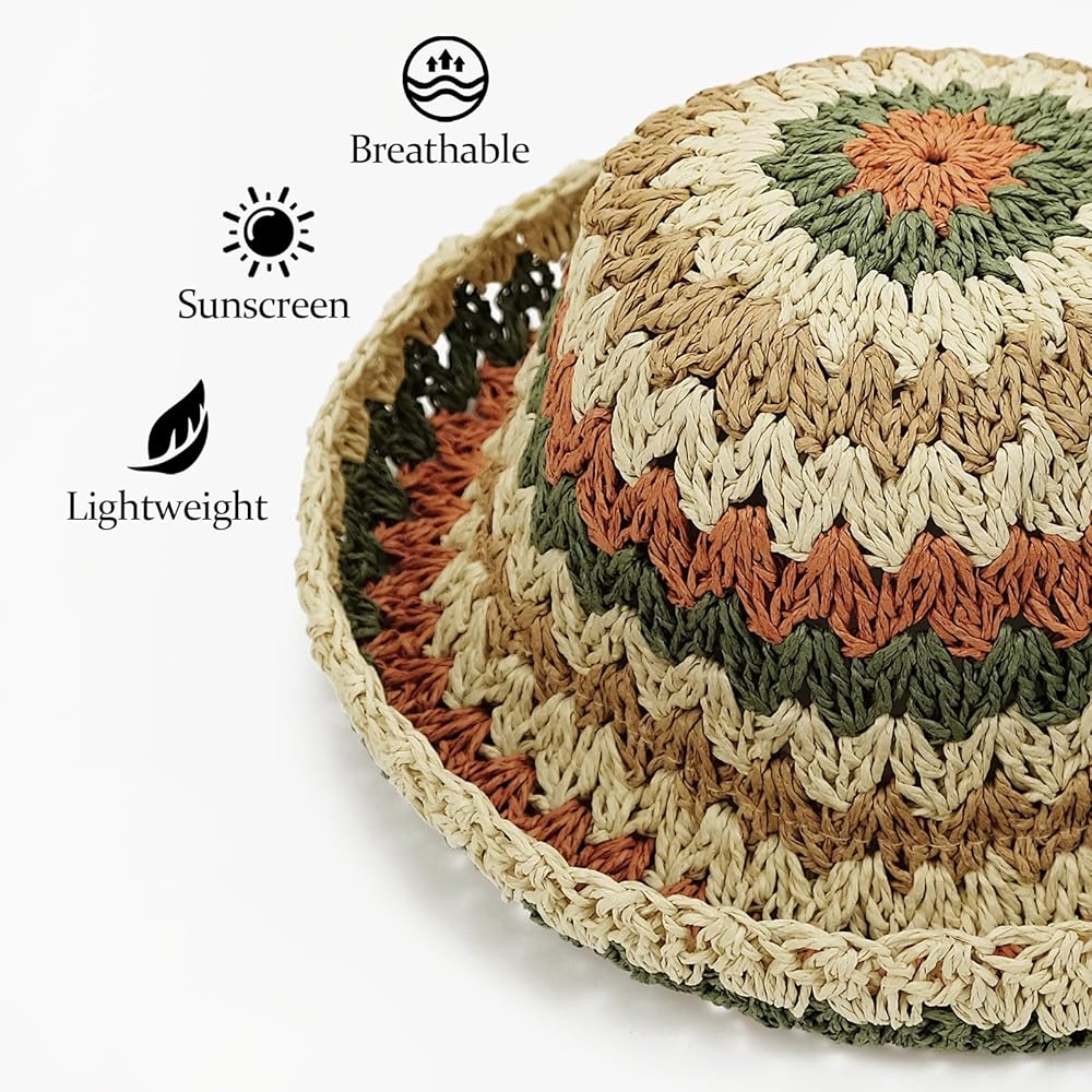 Breathable - This straw hat is not tightly woven, but a little bit loosely woven, similar to a crochet hat. Wearing this sun hat is lightweight and breathable in summer.