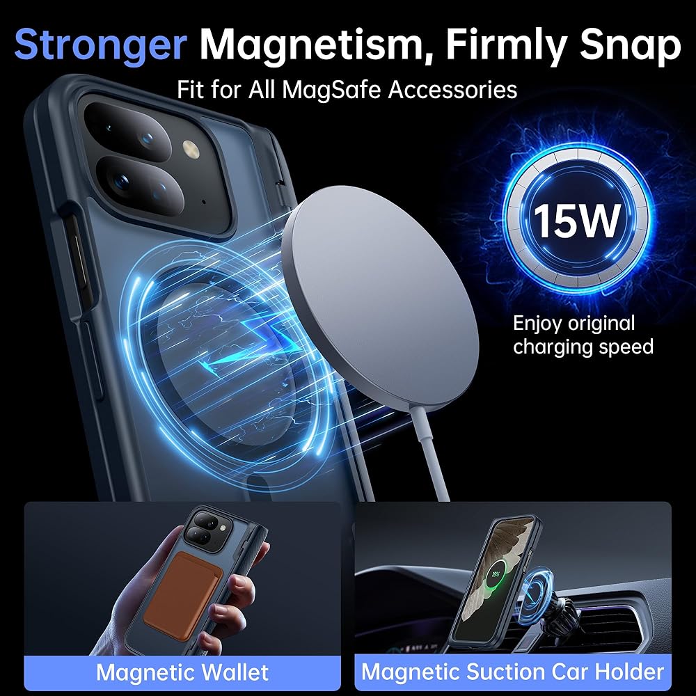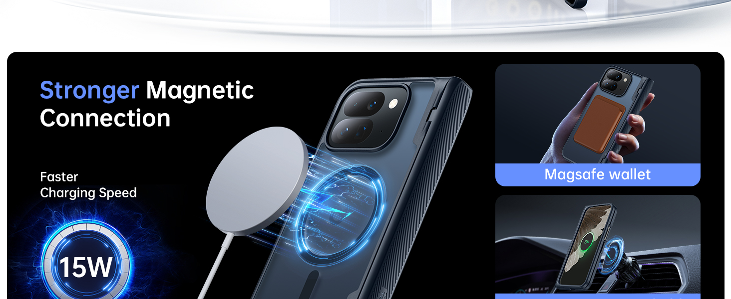 متوافق مع Magsafe: تم دمج الحلقة المغناطيسية القوية N52SH في العلبة وهي متوافقة مع ملحقات Magsafe مثل الشواحن اللاسلكية والمحافظ المغناطيسية وحوامل السيارة