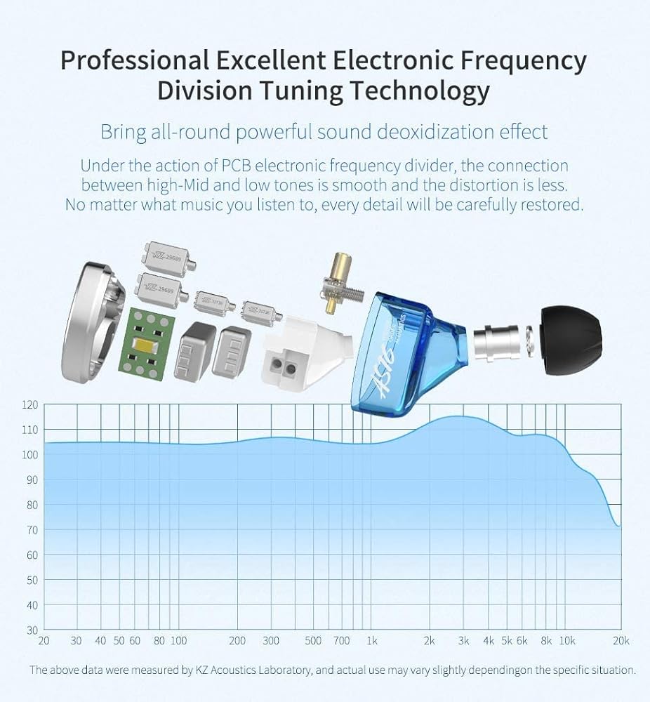 Durable Metal Aluminum alloy Penal: KZ AS16 monitor headphone uses the Aluminum alloy and resin as the major structure material, provide this KZ IEM Headset more durability feature and fashionable appearance.
