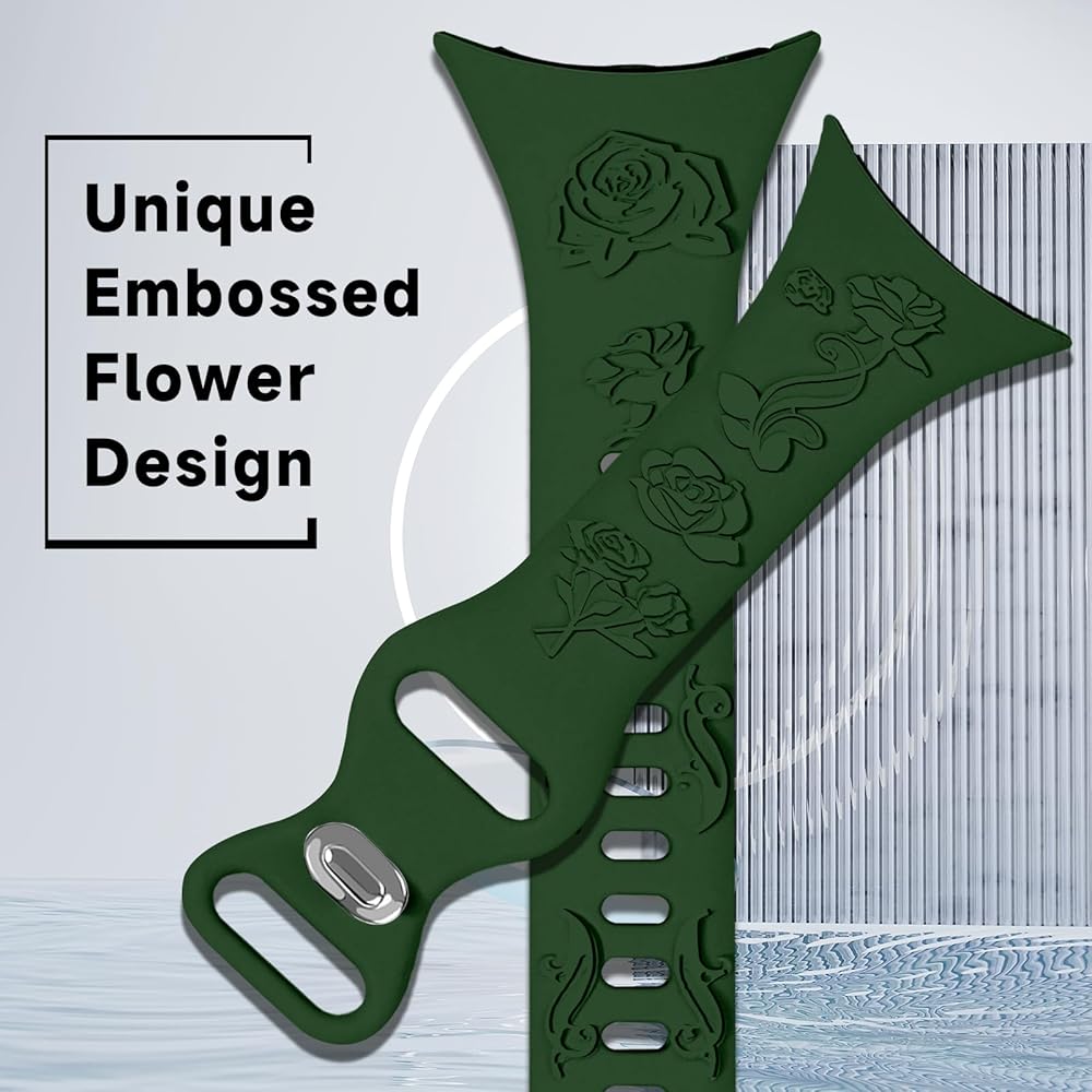 【تصميم منقوش بالورد الساحر】: تم تصميم سوار الساعة المنقوش بنمط الورد ويتميز بتصميم منقوش فريد يعرض نمط الورد لأسلوب أكثر تميزًا. إن نقش زهرة الورد أنيق ولطيف وأنثوي وفريد من نوعه. مع التصميم النحيف والضيق، يبدو حزام السيليكون الناعم بالكامل أكثر رقة وأناقة وأنوثة.