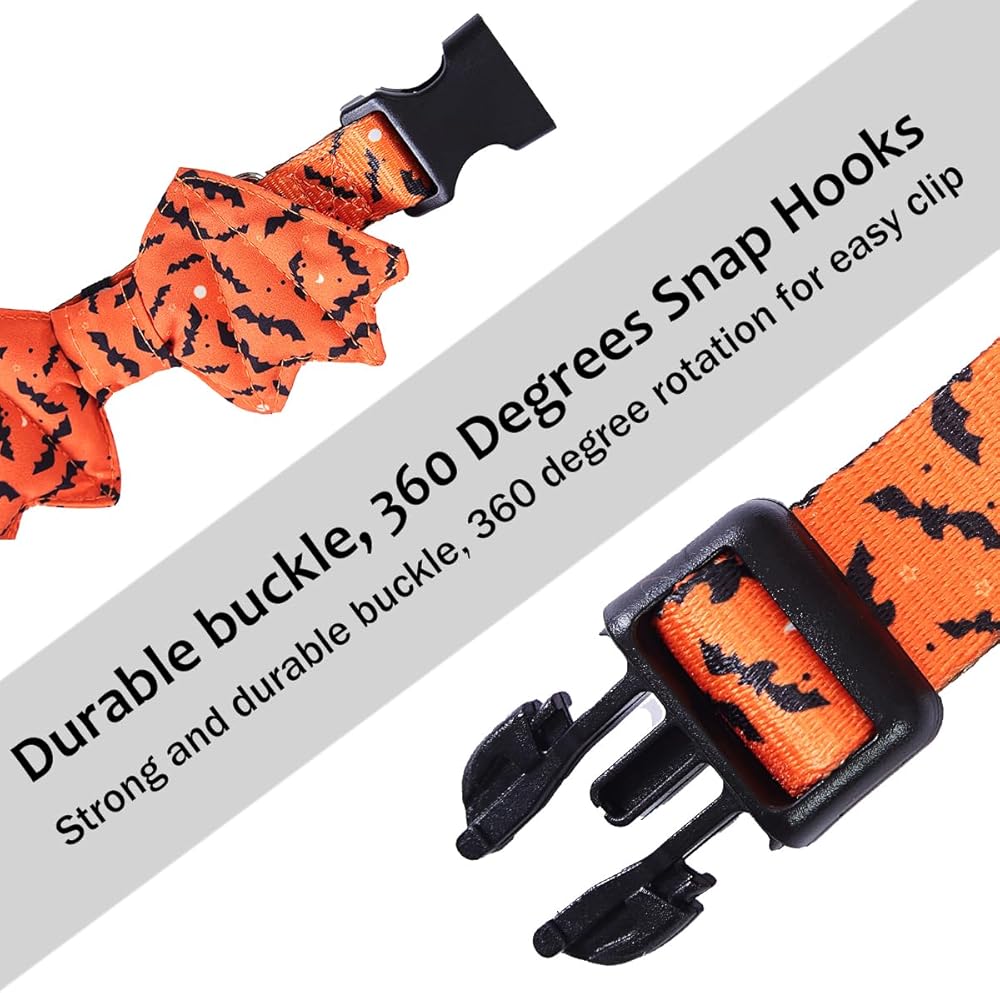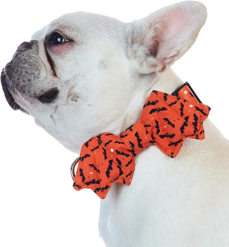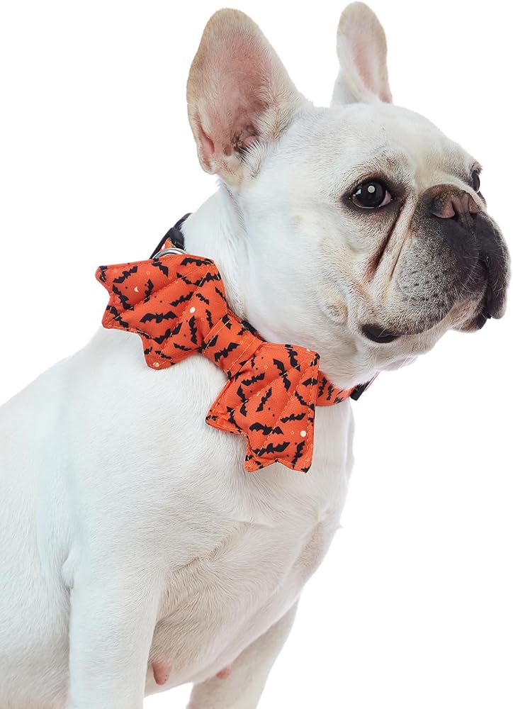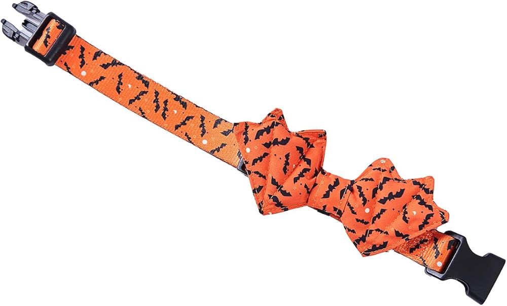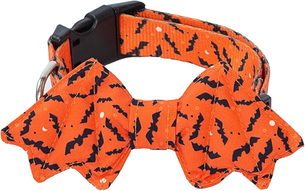 طوق الهالوين للكلاب مع ربطة عنق على شكل خفاش للحيوانات الأليفة للكلاب، كلاسيكي للهالوين، ياقات على شكل فيونكة بإبزيم قابل للتعديل (S)