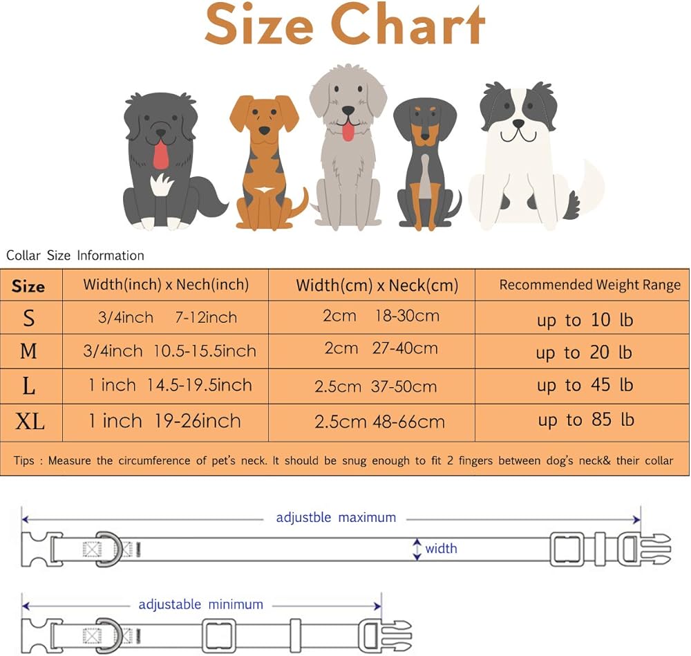 • S size Collar fit for neck:7"-12", see the size chart in the pictures for optimal fitting for your dog